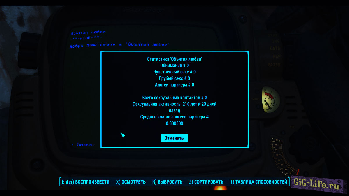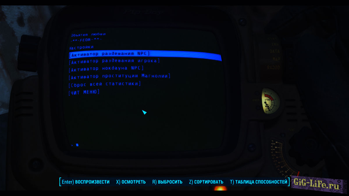 - Голодиск для настройки мода / интимной статистики.