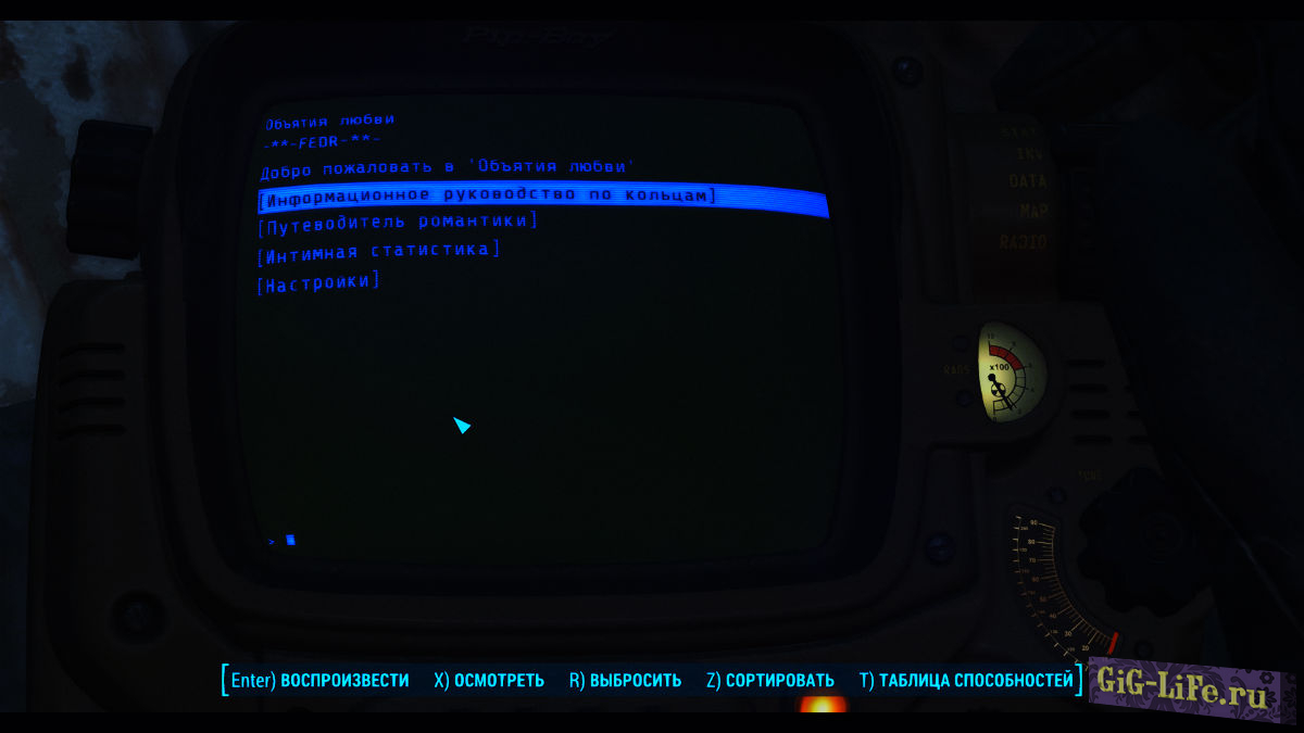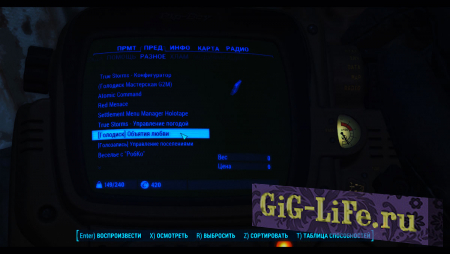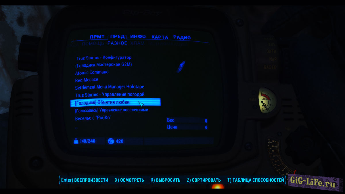 - После первой установки мода и загрузки игры, добавится голодиск в ваш инвентарь [Голодиск] "Объятия любви" в раздел "Разное".