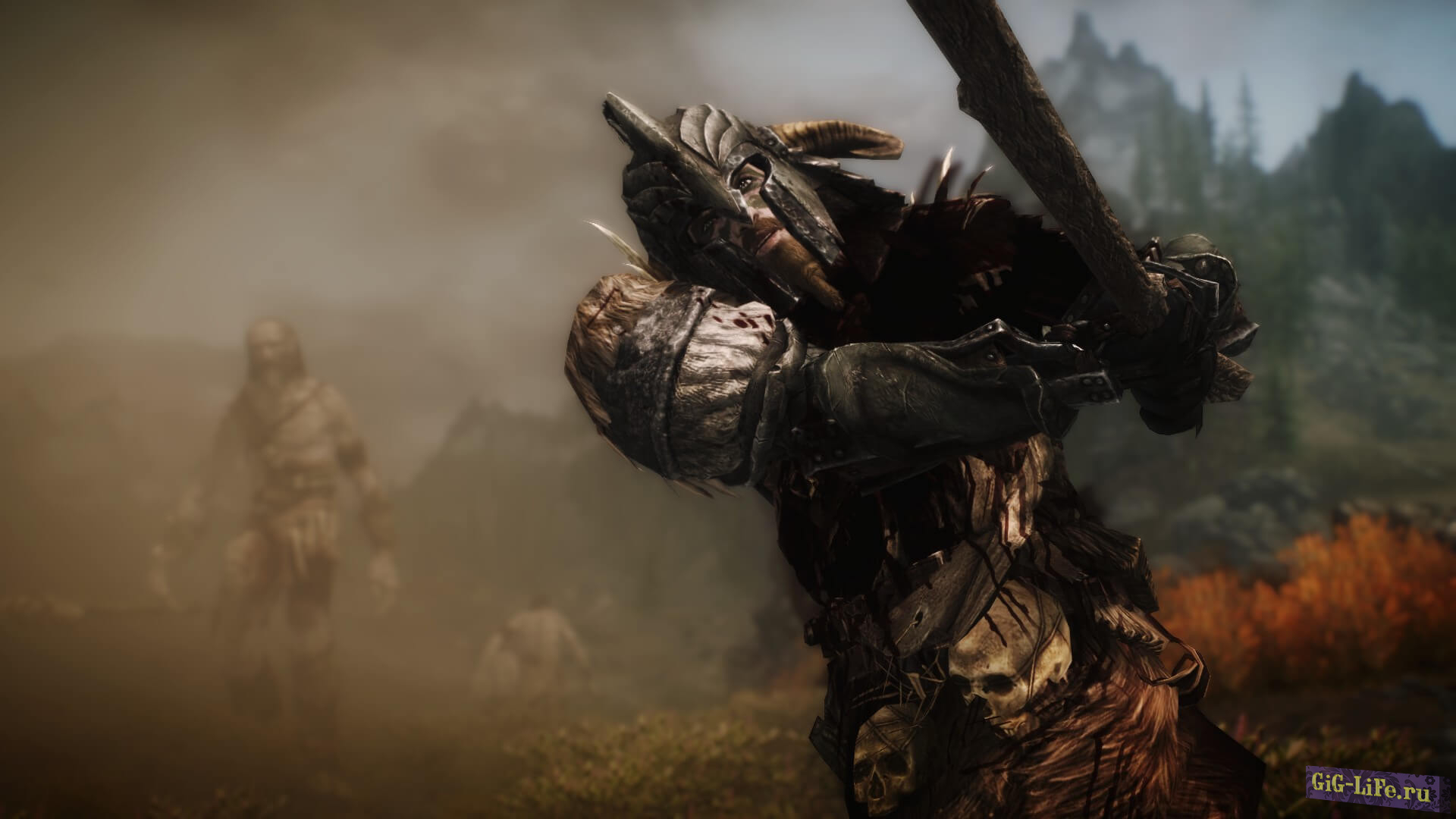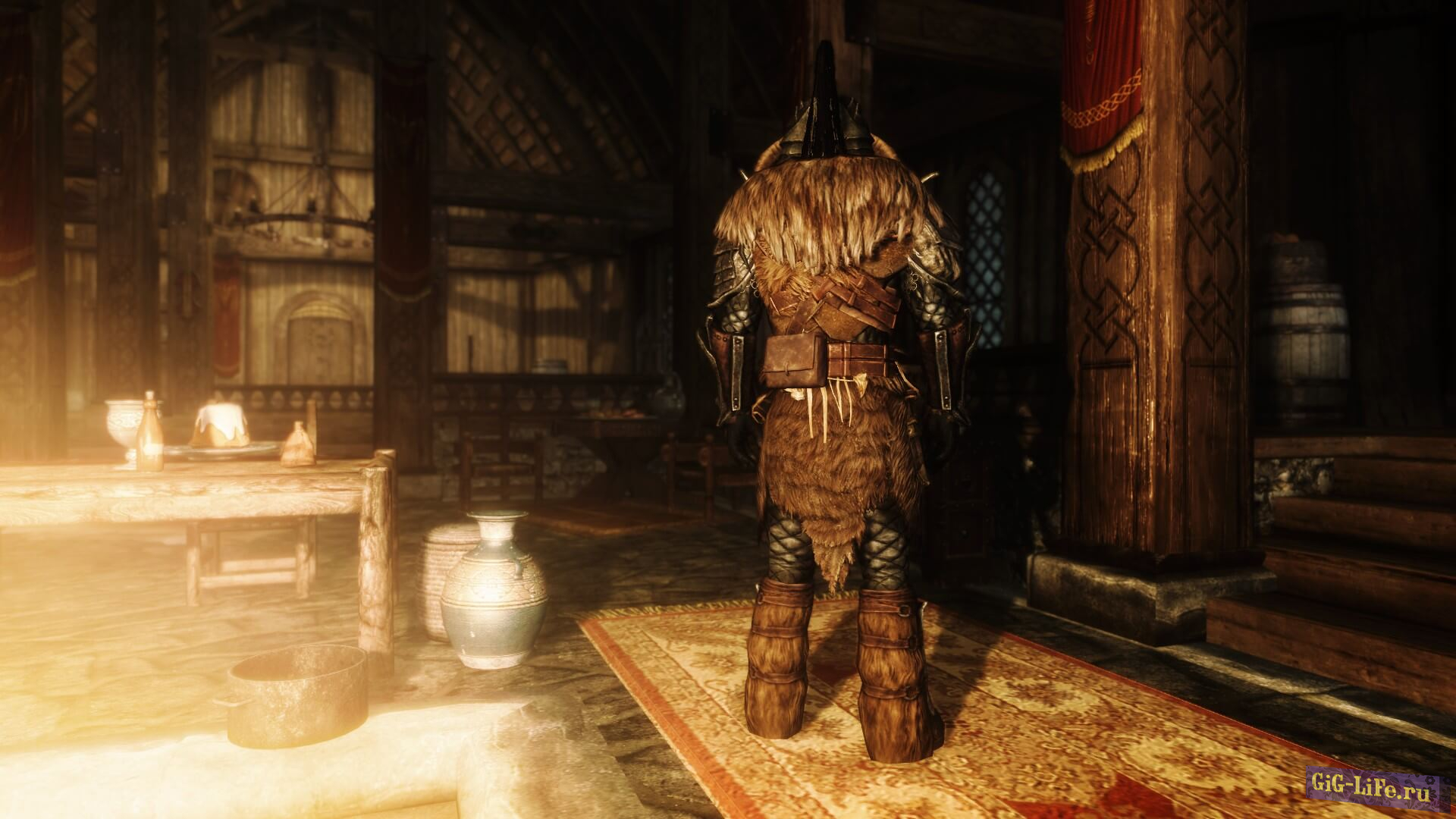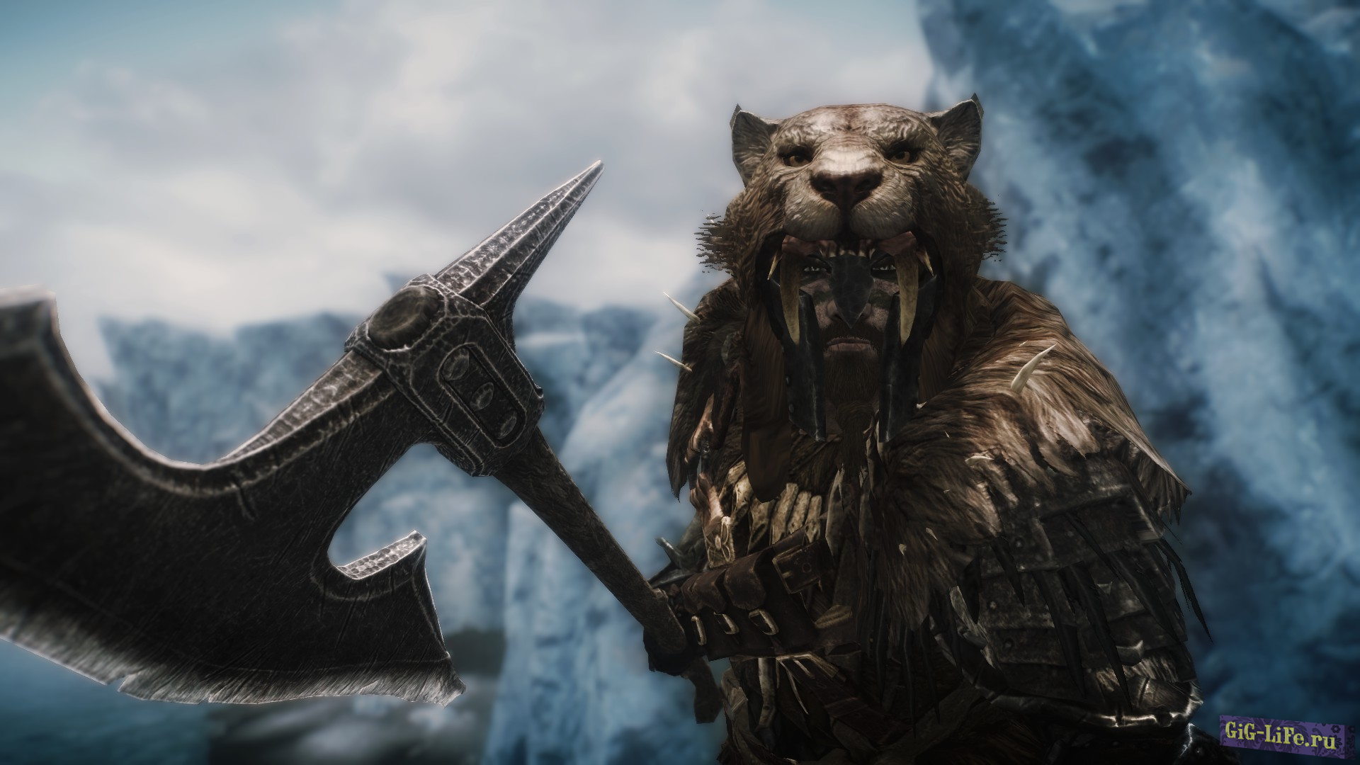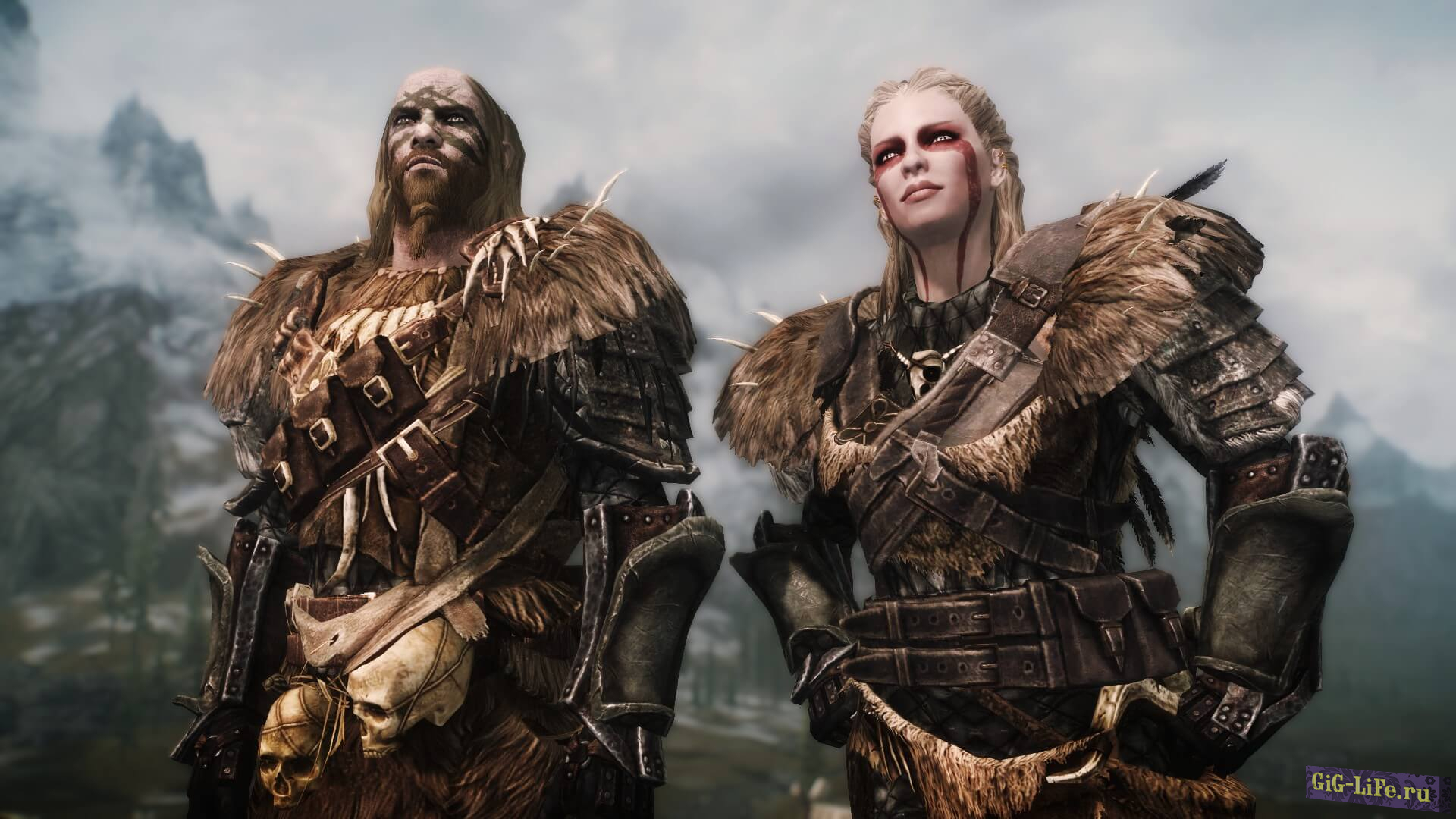 Броня имеет высокое внимание к деталям и покрыта варварским тематическим орнаментом, таким как черепа, кинжал, мешочек для монет, различные другие сумки/кости и т. д. Обратите внимание, что есть два варианта шлема: один очень бронированный, а второй похож на саблезубую кошачью шкуру с подложкой. Короче говоря — броня, достойная вождей!