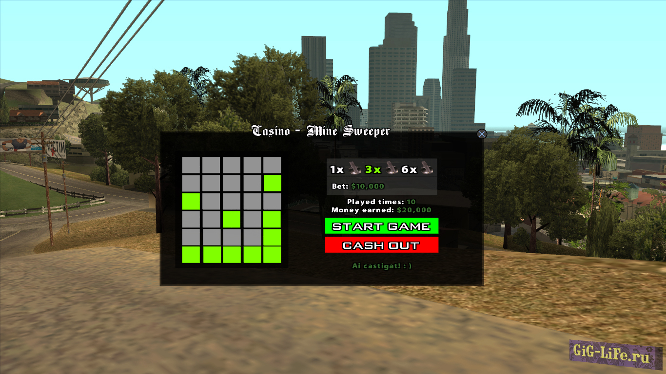 В игре можно выбрать сложность, установить ставку (до $50000), забрать выиграешь в любое время (необязательно открывать все ячейки).
