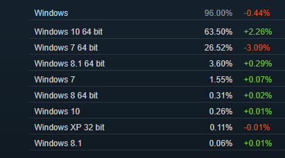 Steam прошел очередной опрос, в ходе которого Valve выяснила, как изменилась статистика по используемому железу и ОС за
