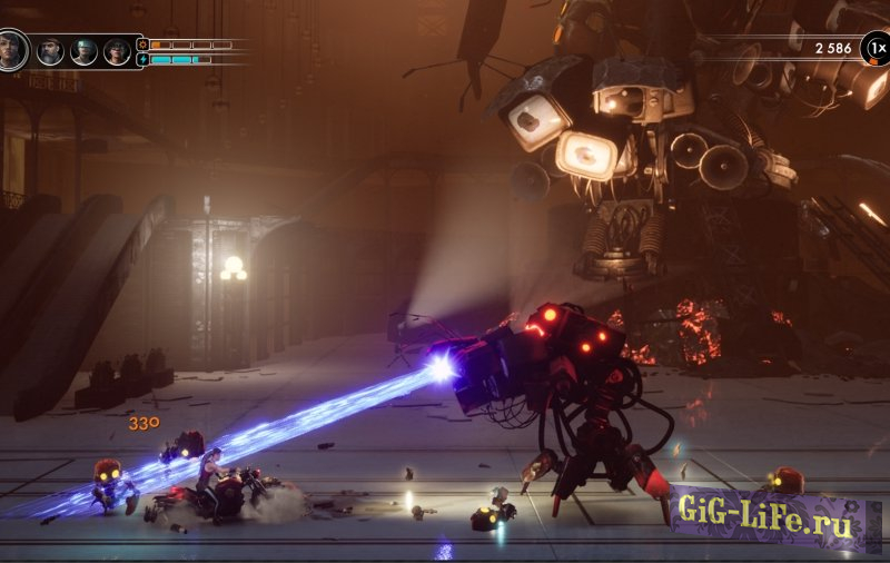 Знакомьтесь: это ваша банда! Вы можете в любое время переключаться между четырьмя разными байкерами из банды Стальных Крыс. У каждого из них есть собственные уникальные способности и оружие, представляющие серьезную угрозу для мусороботов.
