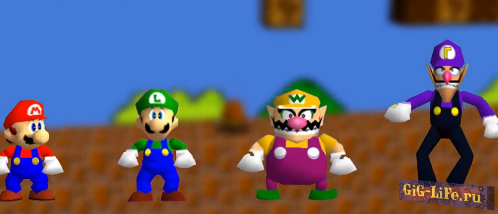 Super Mario Bros в Super Mario 64 — воссоздал более 30 уровней, все бонусы из оригинальной игры.