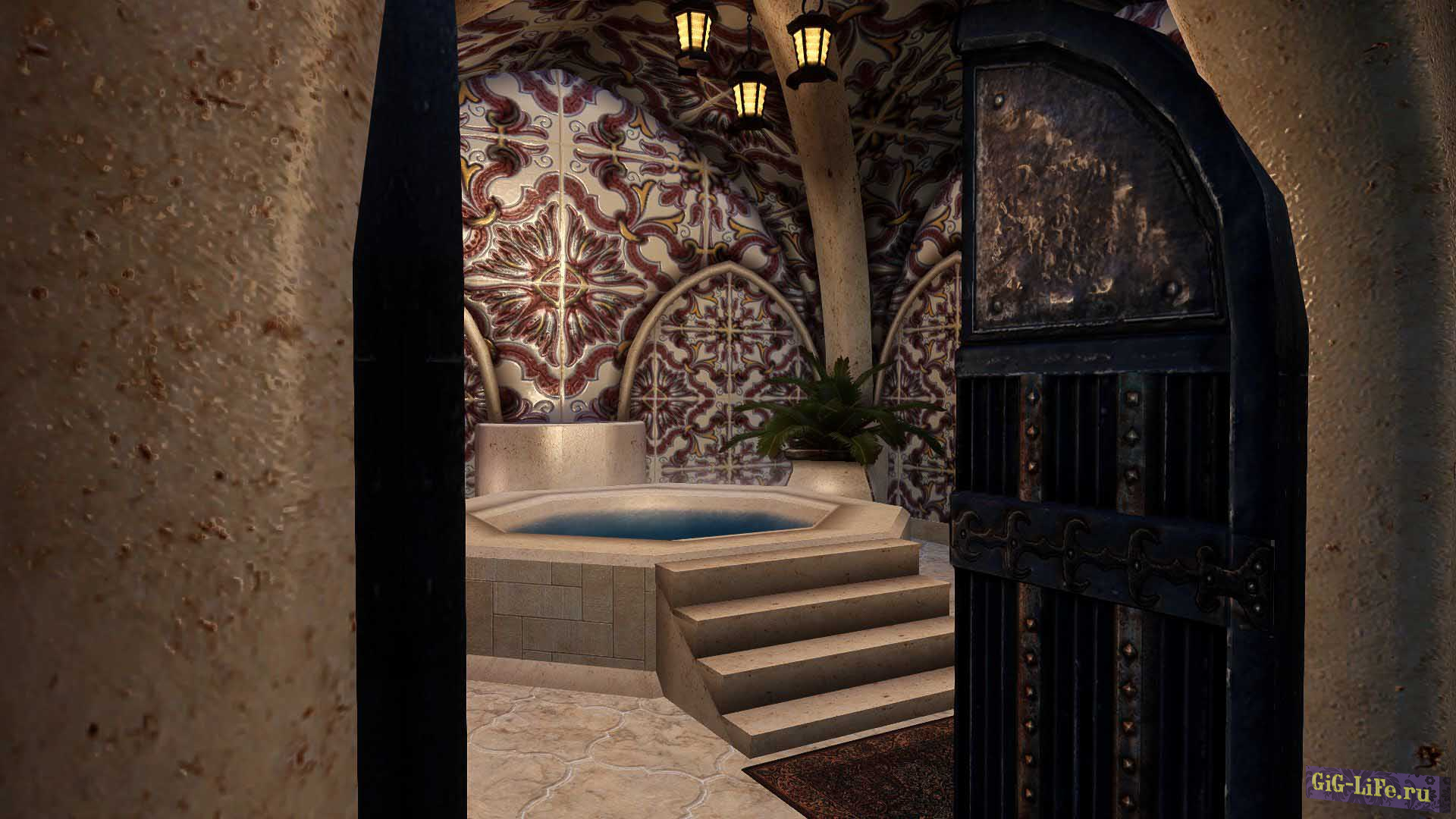 - Ещё очень хорошее удобство. Возможность переместиться по карте прямо из Оазиса не выходя в Скайрим. Типа сидишь, куришь в бассейне, нажал на Солстейм и уже там.