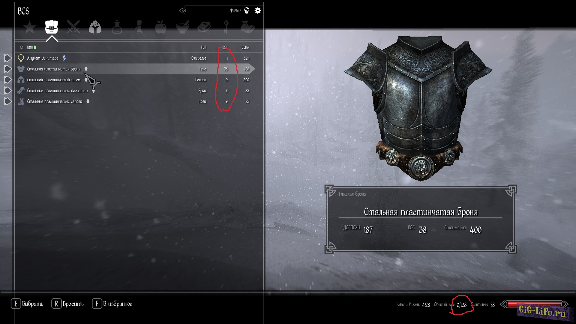 Простенький плагин для Skyrim полностью убирает вес экипированной брони, то есть если вы одели тяжелую броню - эта броня не будет иметь веса. Когда снимете - вес снова появится в инвентаре. Теперь тяжелая броня в начале более играбельна. Щиты и оружие все равно имеют вес.