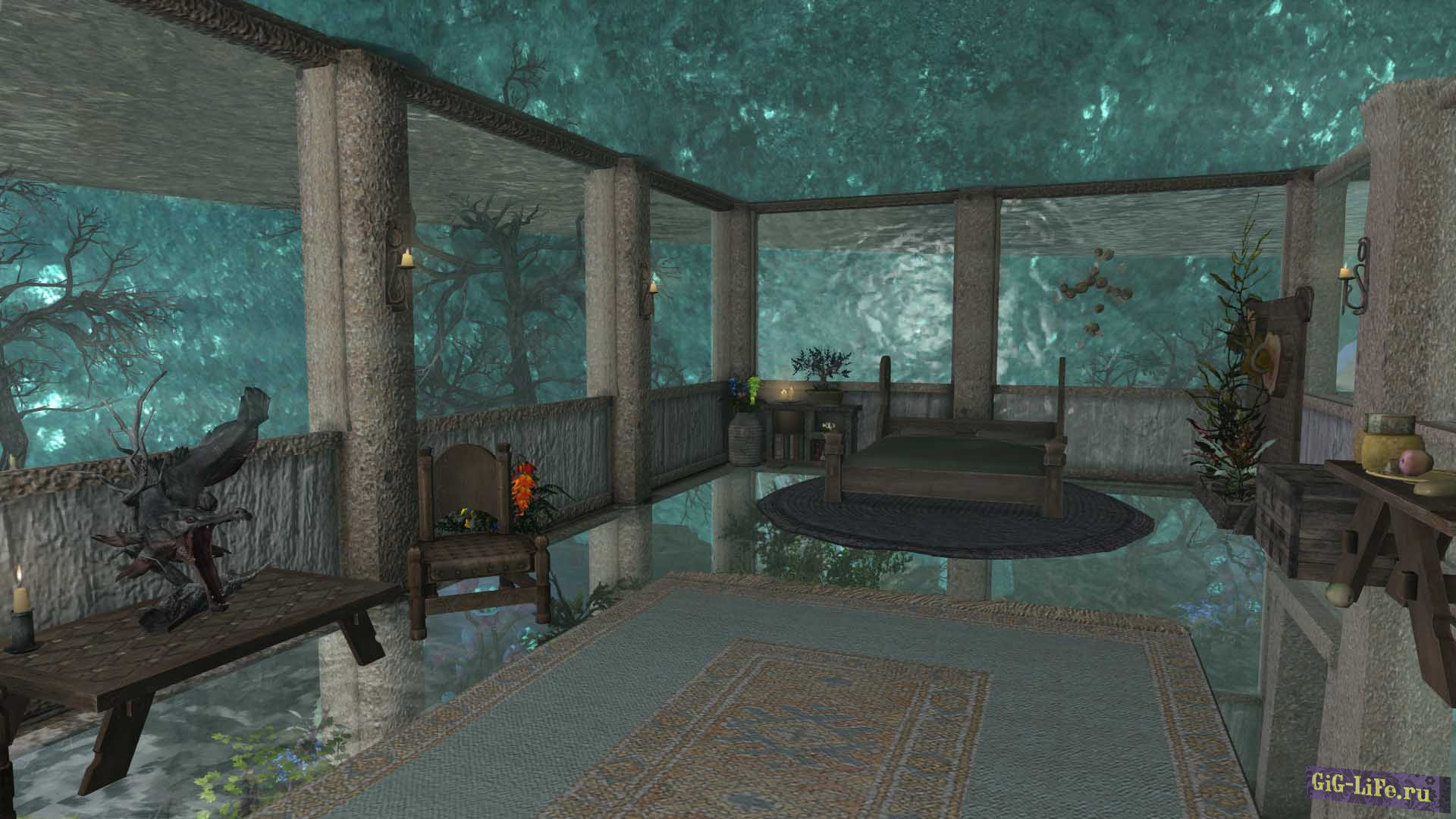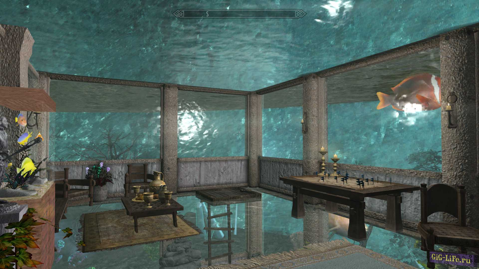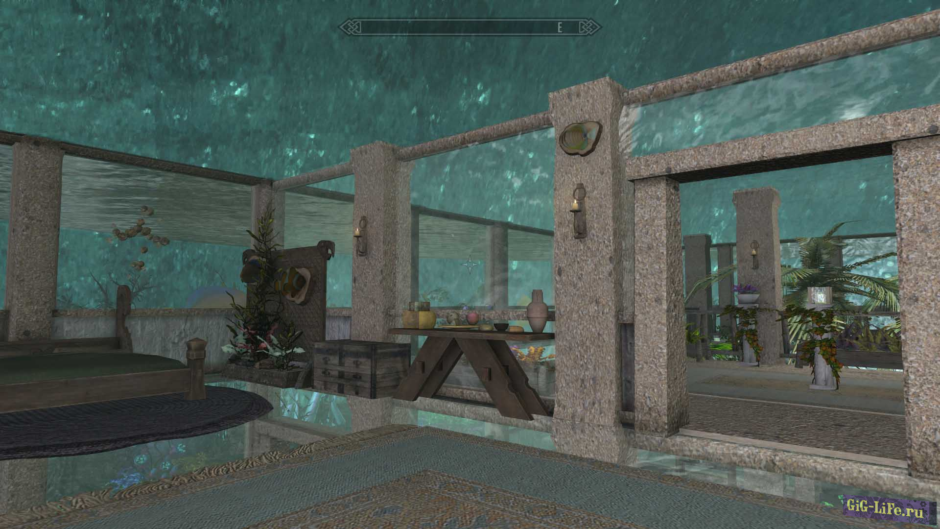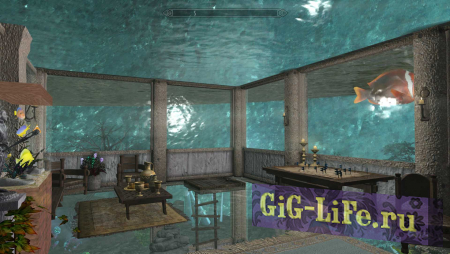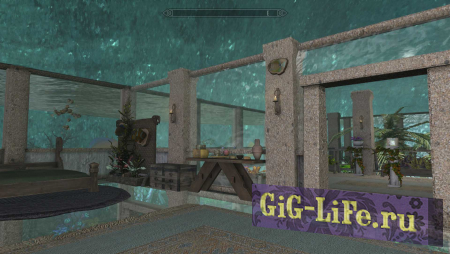 Модификация для Skyrim добавляет крайне необычный, но красивый подводный дом. Маленький, но уютный подводный дом со всеми необходимыми предметами, телепортами в любой город (в том числе и для DLC Dragonborn и в замок Стражи Рассвета).