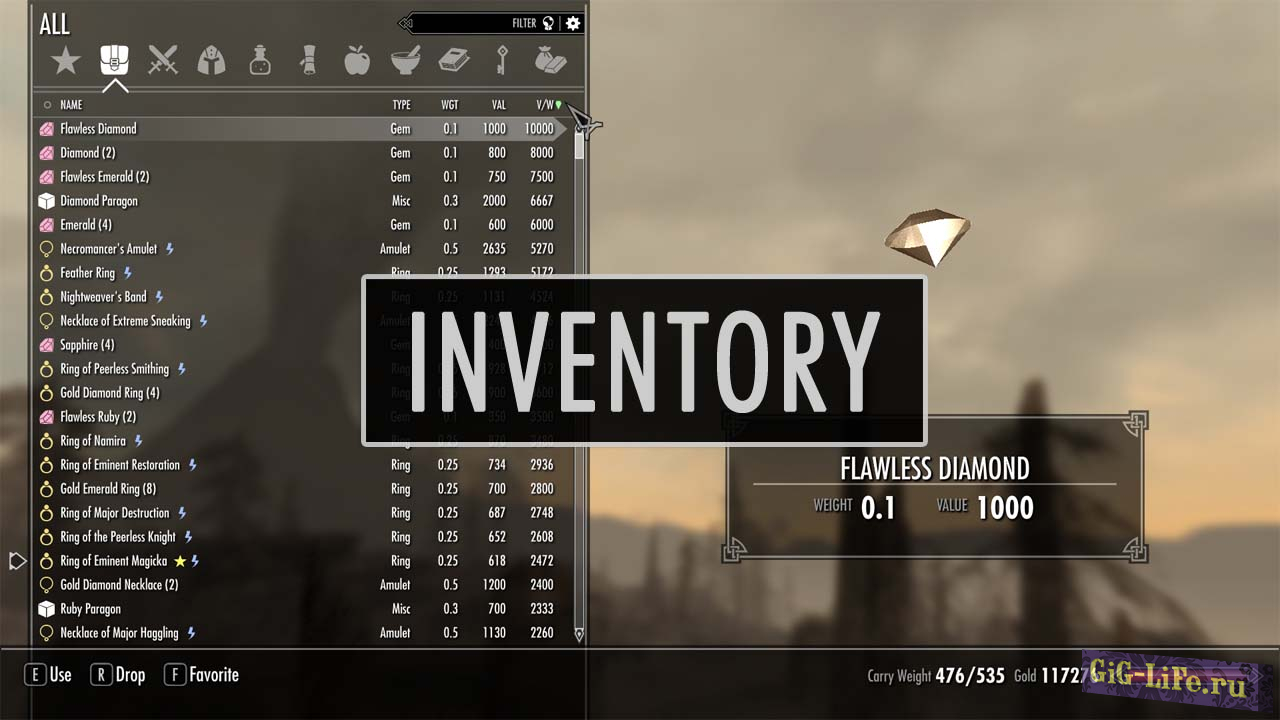 - Специальные иконки показывающие украденные, зачарованные вещи или нанесенный яд