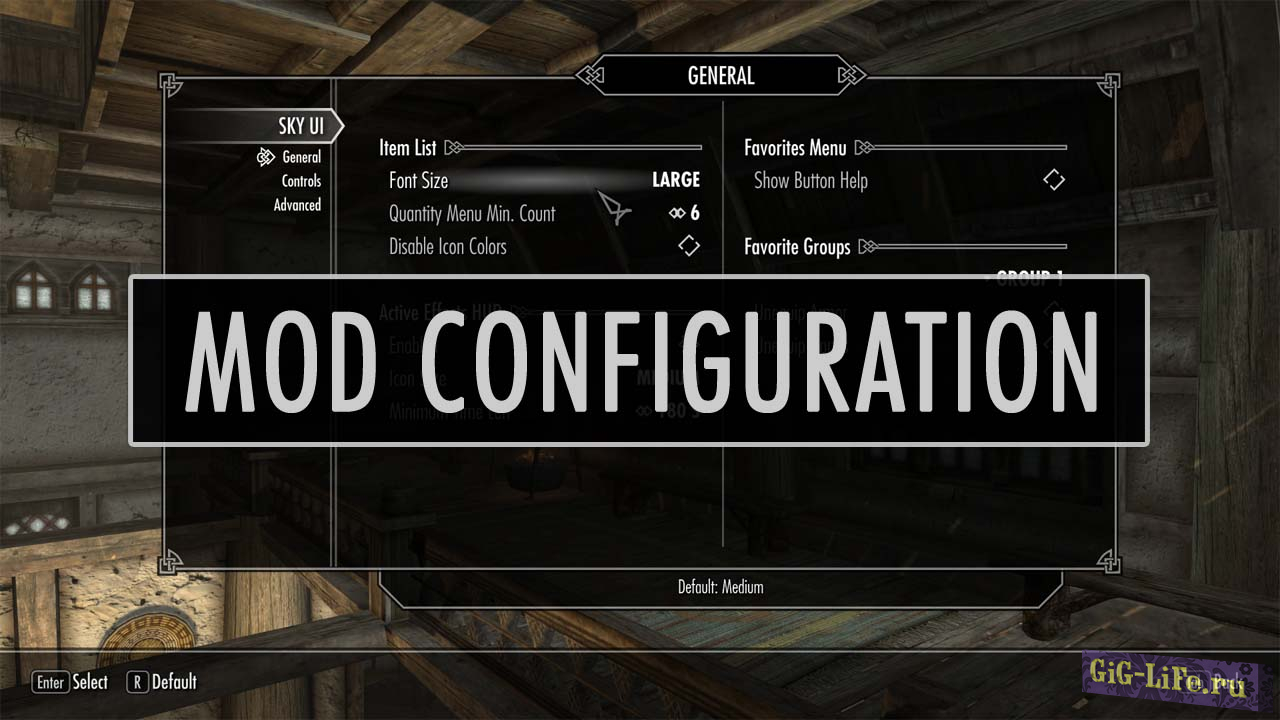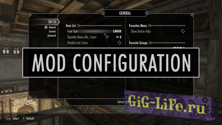 Начиная с версии 3.0 добавлено меню настройки мода MCM, которое можно увидеть в главном меню (по нажатию клавиши Esc).