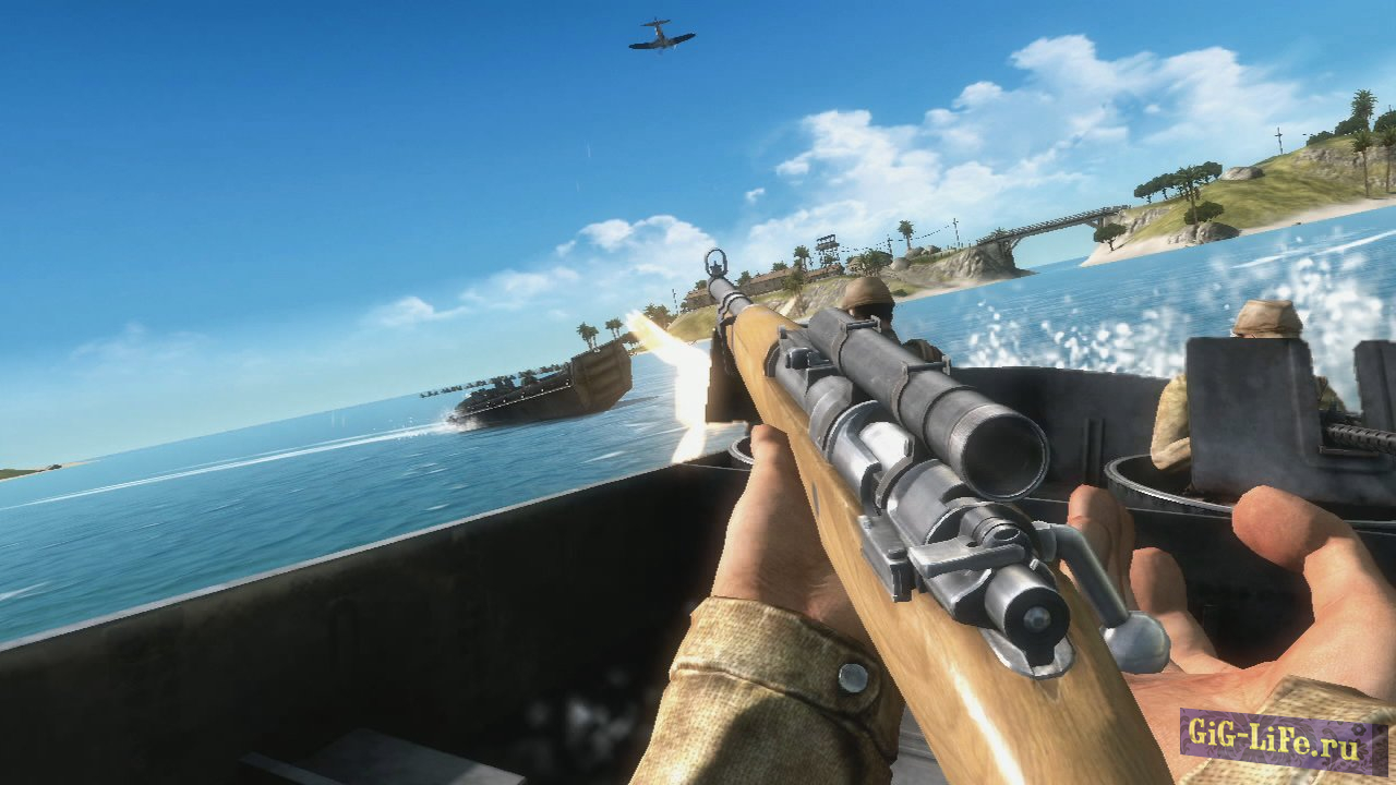 Вторая мировая война продолжается, только теперь местом игровых действий этого увлекательного шутера от первого лица произойдет на тихоокеанских рубежах. Война идет между Америкой и Японией. Американские войска высадились на одном из японских островов и начинают атаковать противника, используя не только автоматы, но и военную технику.