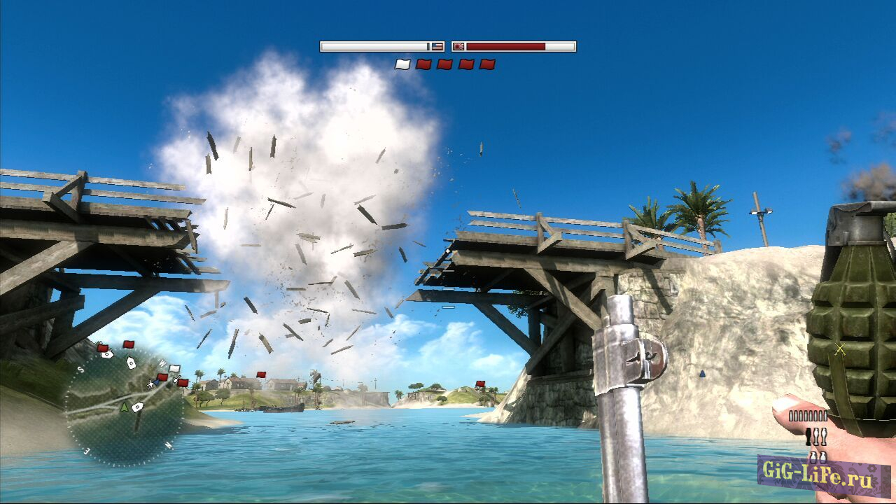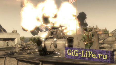 В данной игре представлены всего три карты – но это масштабные игровые карты. Так что изучите все дислокации противников, соберите свою команду бойцов и в совместном сетевом режиме уничтожьте все базы соперника, которые расположены на разных островах Тихого океана. Зрелищность от процесса игры вам гарантирована.
