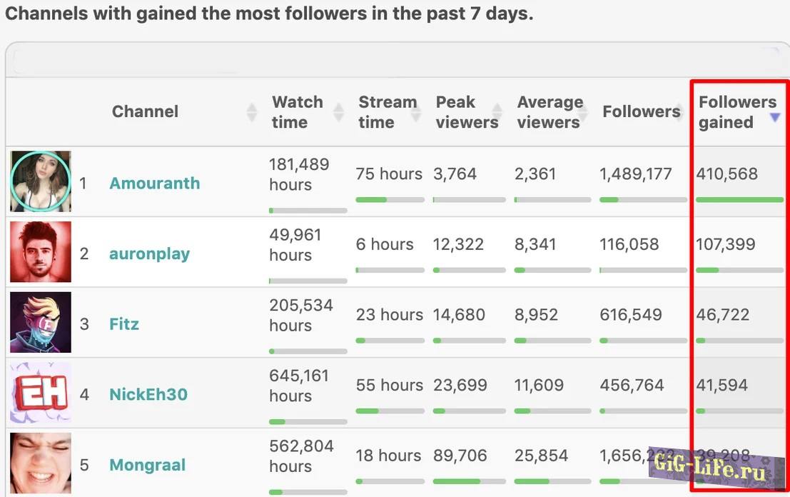 На изображении ниже можно увидеть рост подписчиков популярных Twitch-каналов за последние семь дней. На Amouranth подписались свыше 410 тыс людей, что позволило ей выйти на первое место. На втором месте расположился канал игрового стримера auronplay — 107 тыс подписок.