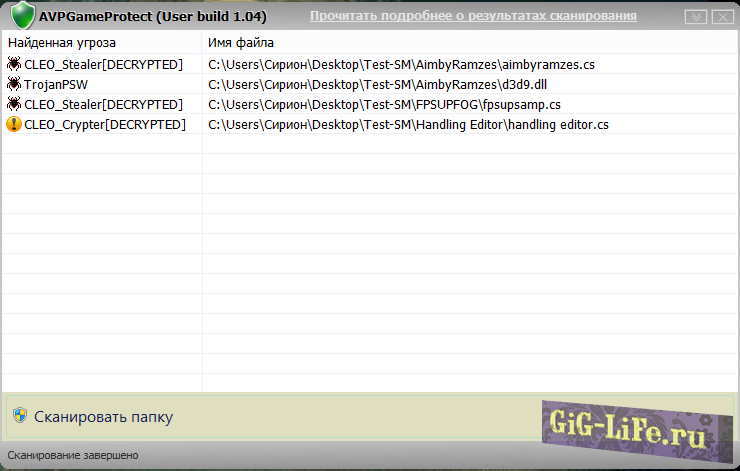 - Сканирование asi, dll, cleo, sf, cs и других потенциально опасных файлов.