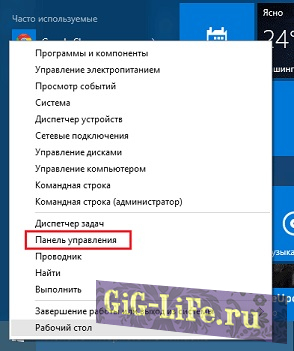 Итак, для начала следует открыть Панель управления. Делается это так же просто, как и доступ к Командной строке – банальным правым кликом по «Пуск» и выбором соответствующей строки.