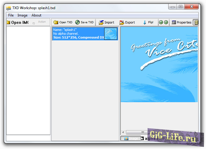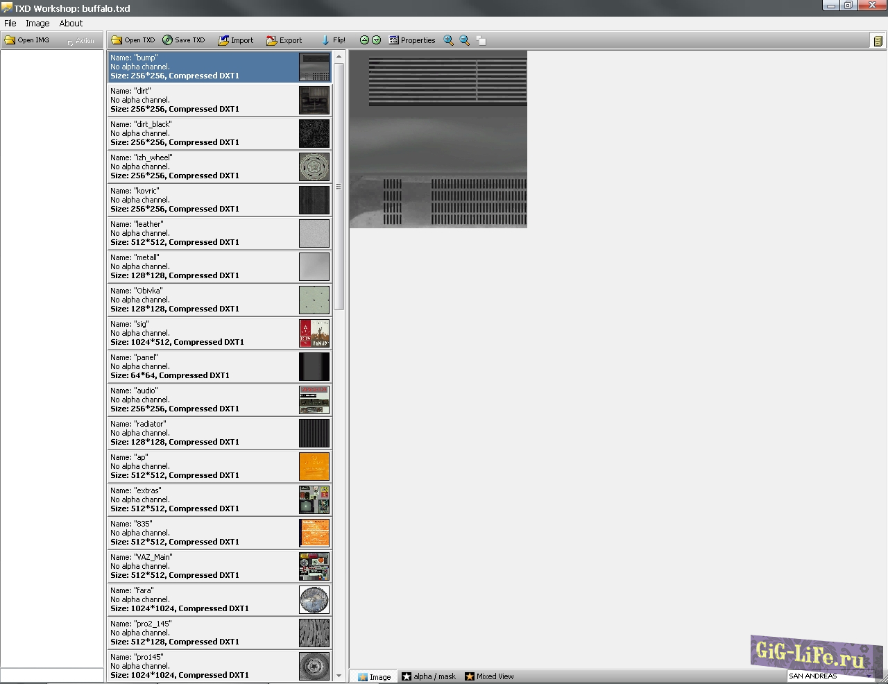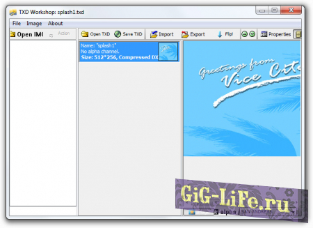 TXD Workshop является одной из лучших программ для замены TXD текстур (включая сжатые) в играх серии GTA. Поддерживает работу с IMG файлами. Версия 5.0 совместима с текстурами GTA3, GTAVC, GTASA, VCBOX, GTA3 Android