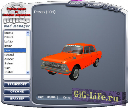 Русская версия программы GTA Garage Mod Manager. С помощью этой программы можно заменять и просматривать модели автомобилей и оружия.