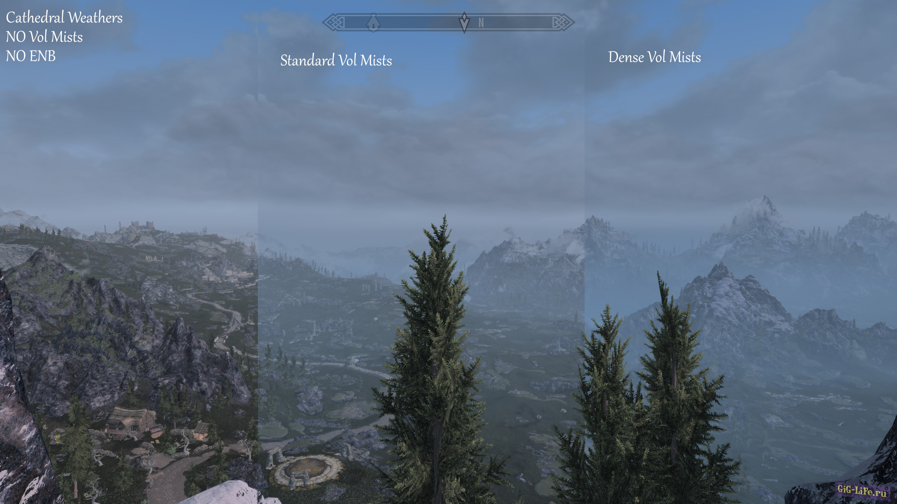 1. Версия без модов. 2. Объемный туман. 3. Плотный объемный туман.