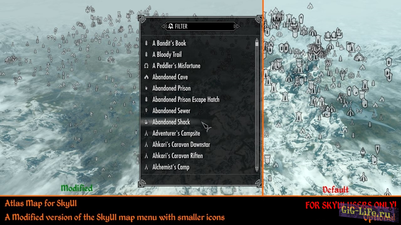 Основным изменением, вносимым этим дополнением, является добавление меню конфигурации мода. MCM позволит вам выбрать, какие маркеры карты вы хотите активировать. Большинство маркеров включены по умолчанию, но любой из них можно отключить. Теперь можно настроить даже основные местоположения, которые нельзя было переключить в исходном меню Атласа.