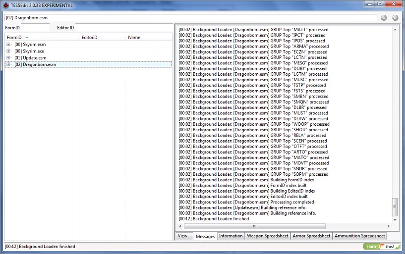 - Открываем плагин в TES5Edit. Подгрузится нужный esp и мастера, нужные для его работы.