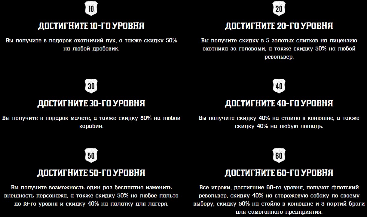 За все задания по поставке, задания по продаже товара и тематические задания свободного режима игрокам начислят на 50% больше опыта. У лихих стрелков есть возможность заработать вдвое больше опыта за задания из категории «Земля возможностей», а также задания и события свободного режима.Кроме того, все, кто войдет в Red Dead Online в любой день на этой неделе, получат скидку 50% на любой жилет до 15-го уровня.