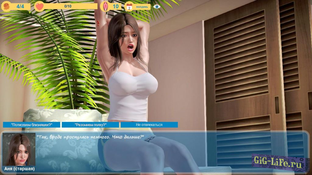 Ваша история и путешествие начинается с большого дома куда попадаете в большую семью. Она состоит из трех сестер, родителей и пары сыновей. Следует отметить что у всех разные биологические родители, потому что они были усыновлены или удочерены. Поскольку члены семье не являются кровными родственниками и всем им больше 18 лет, то похотливым ручонкам демона будет где «развернуться».