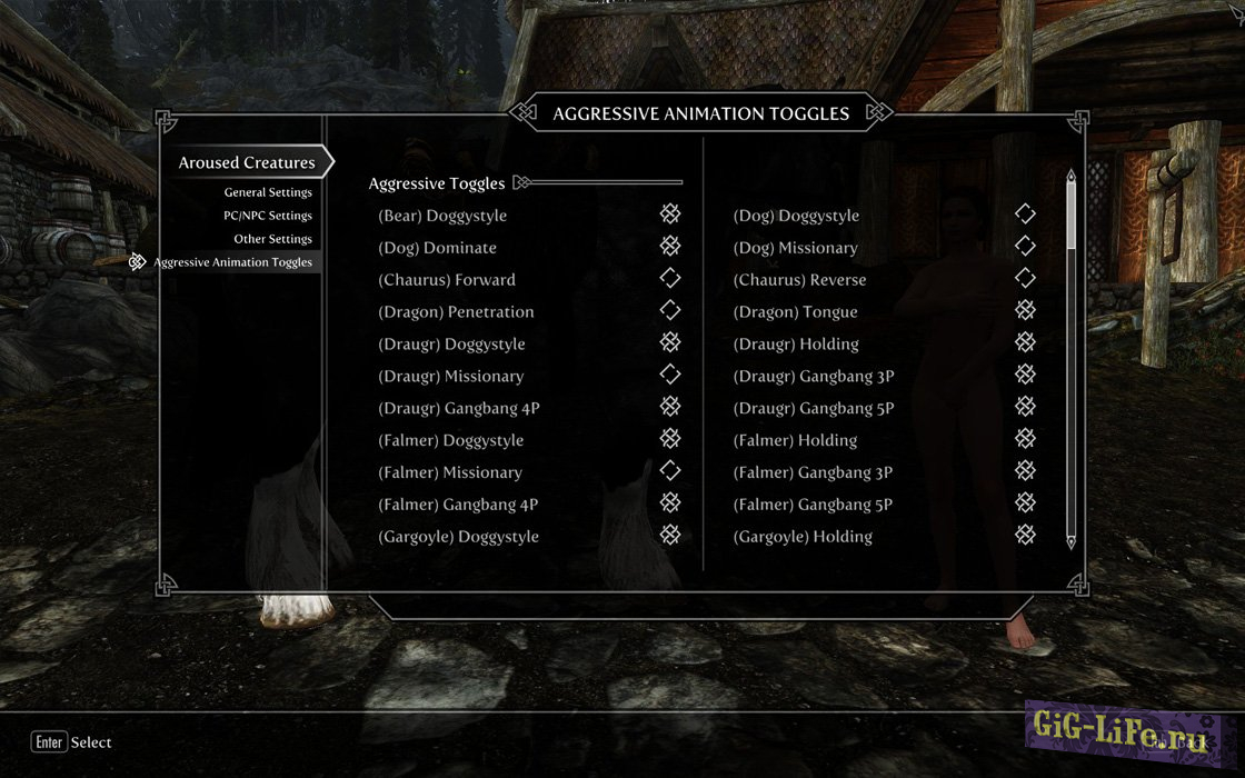 Этот мод разрешает любому не враждебному существу изнасиловать или соблазнить вашего ГГ и любого доступного НПС.