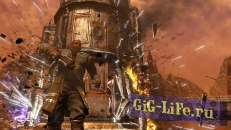 - Стратегическое разрушение. — Уничтожайте препятствия и устраивайте засады, используя невероятную интерактивность окружения. Проделайте дыру в стене, чтобы расчистить дорогу для своего транспорта. Взорвите пол, чтобы сбежать от преследователей. Обрушьте лестницу, чтобы остановить погоню. В Red Faction: Guerrilla вы можете до неузнаваемости изменить окружающий мир!
