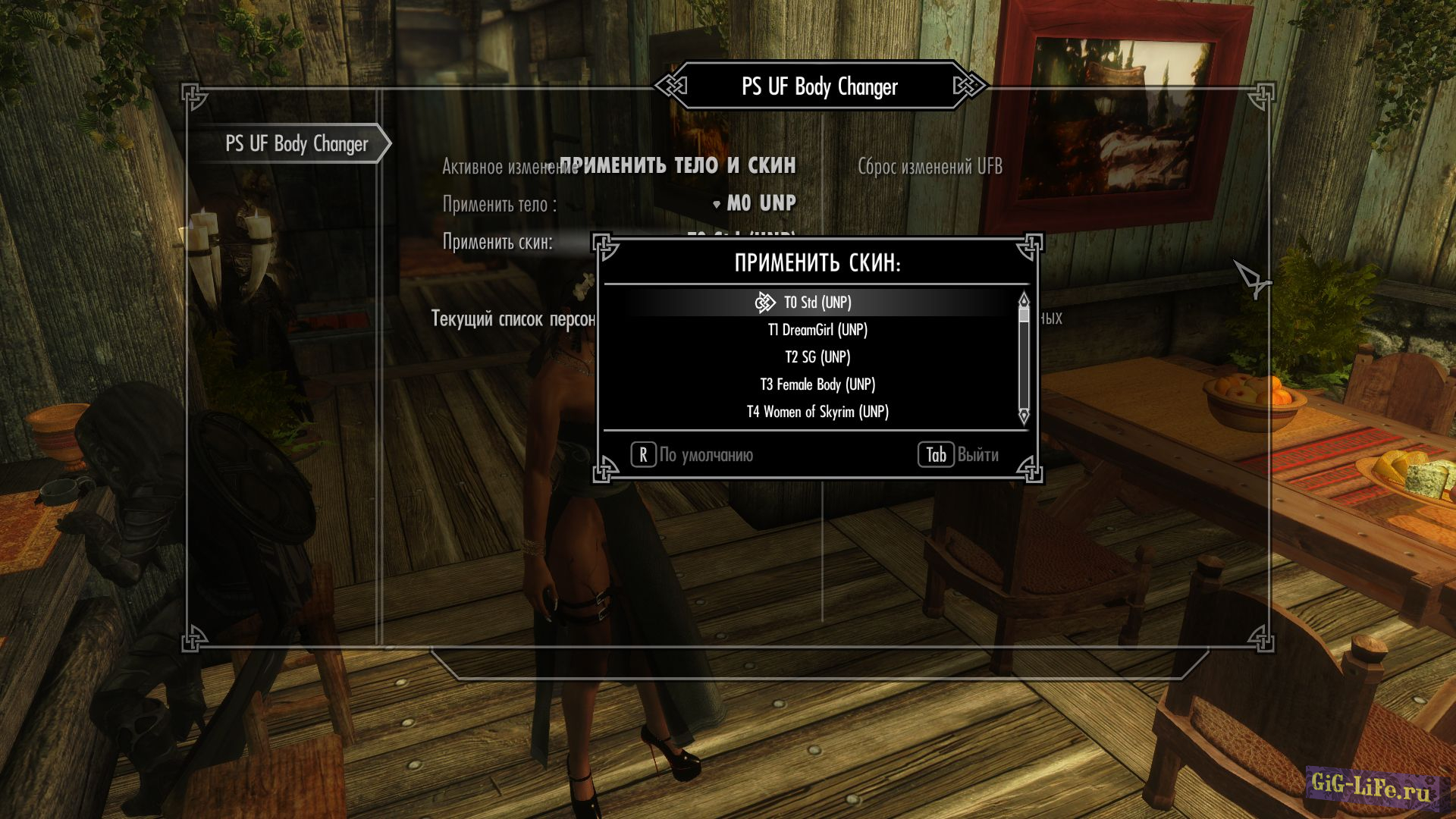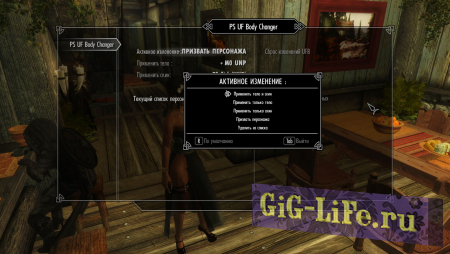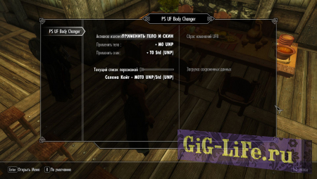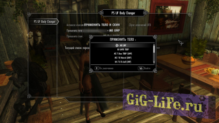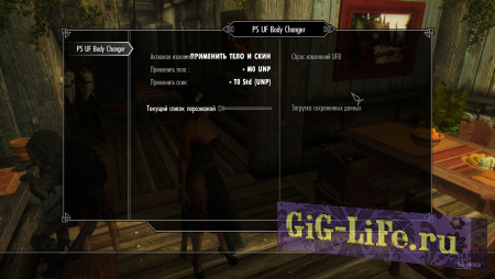 - Зайдя в MCM-меню (Главное меню=>настройки мода=>PS Any Female NPC Body Changer) можно будет изменить тело и скин персонажей.