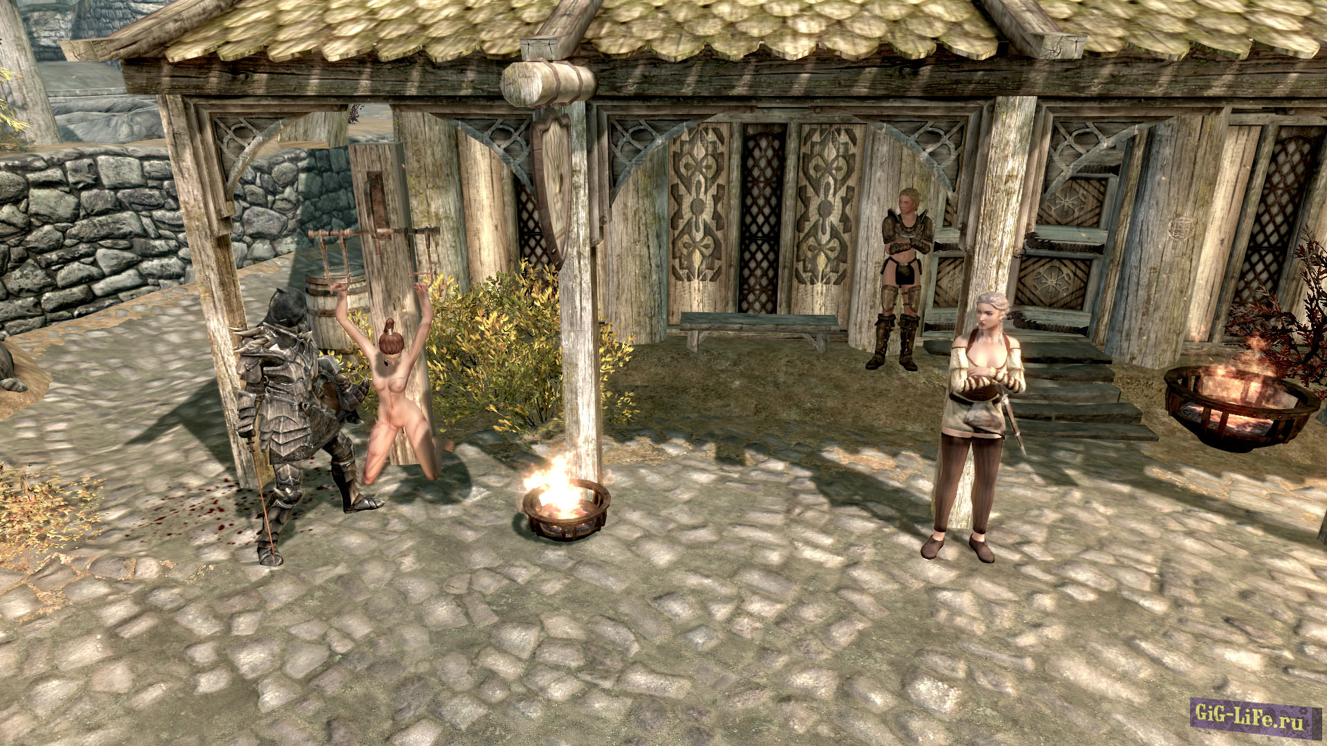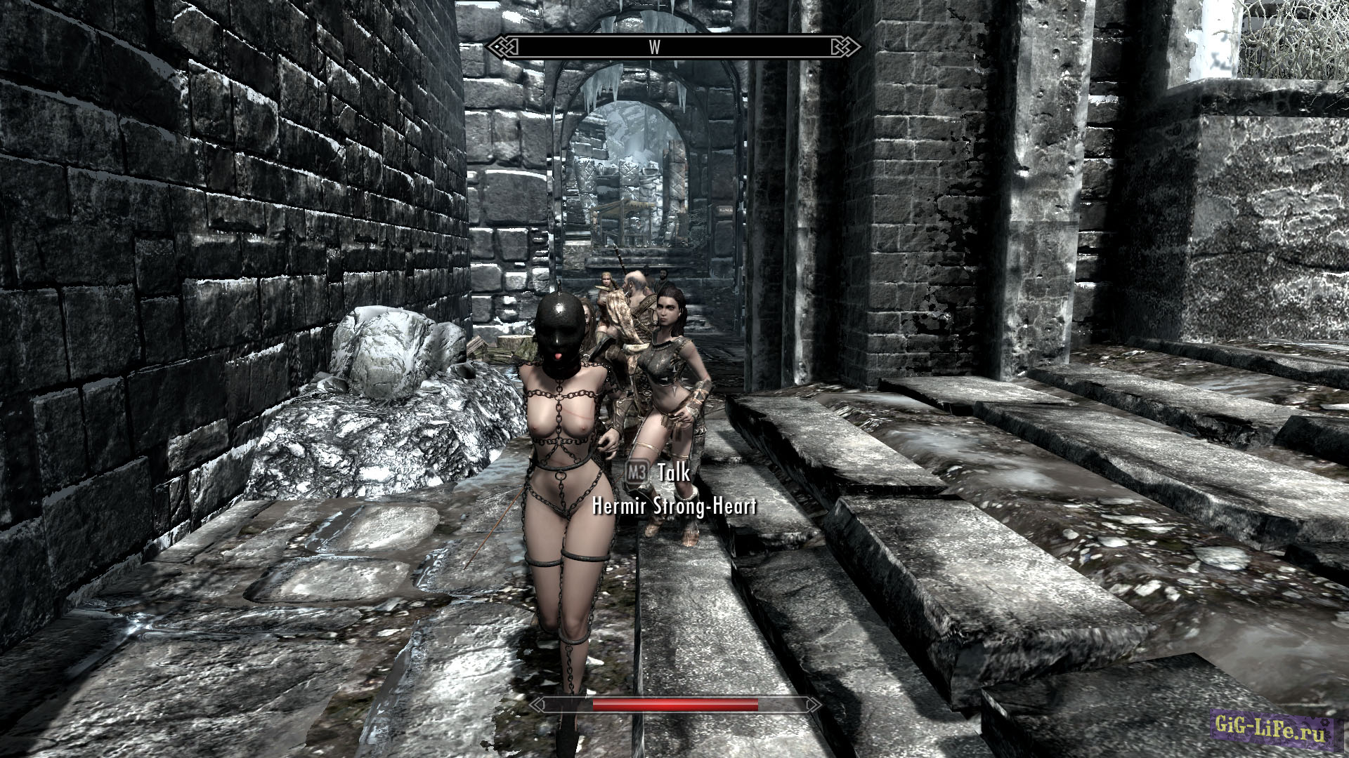 Подсказка: не давайте тащить себя по лестницам. Идите сами, или нажмите клавишу С иначе можете завязнуть. Если вы хотите, чтобы следы от кнута и других ран держались дольше, вы можете настроить это в Skyrim.ini. В разделе [Display] добавить следующее:
