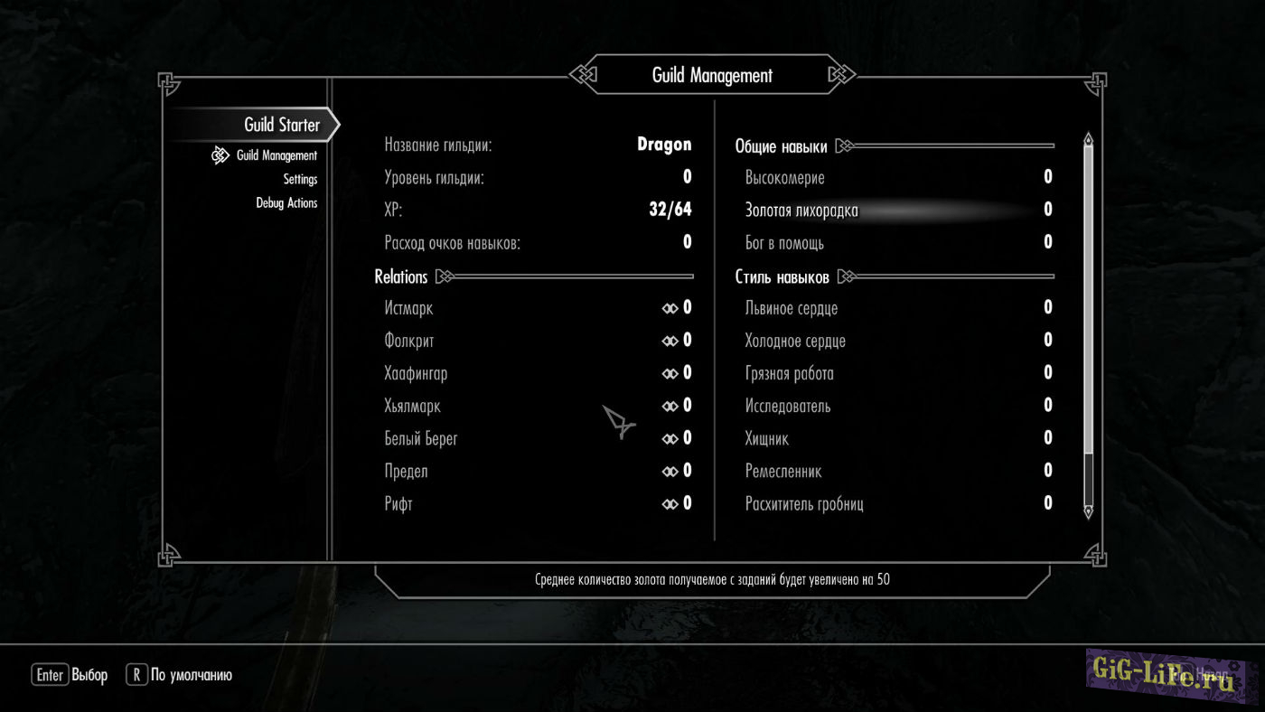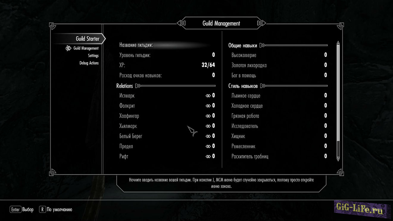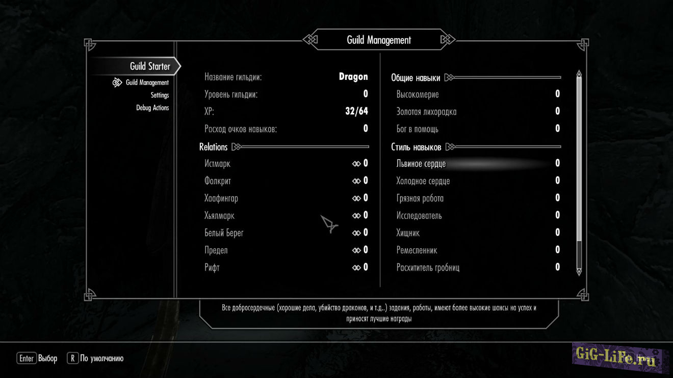 Описание: Вам наверное хотелось в игре создать свою собственную гильдию, но это не доступно в игре, ну а теперь все в ваших руках. Данный мод вносит в игру новую возможность для вашего персонажа, создать свою гильдию!
