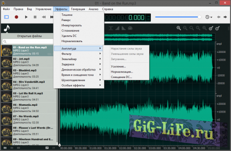 Применение эффектов, таких как эквалайзер, усиление и фильтрация является важной частью редактирования аудио. Однако, очень сложно получить желаемый результат, используя опции и не слыша результата. Чтобы облегчить настройку звуковых эффектов в ocenaudio есть функция предварительного прослушивания в режиме реального времени, вы слушаете обработанный сигнал при настройке и можете тут же изменить или отменить эффект.