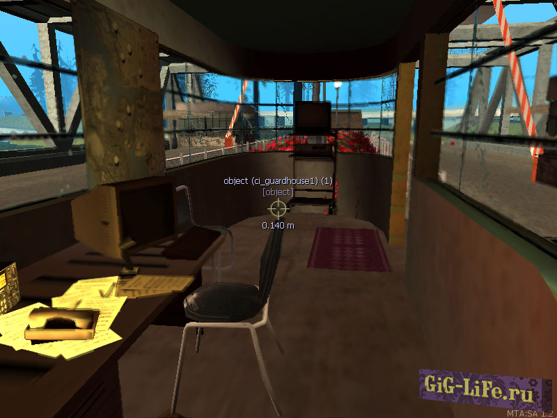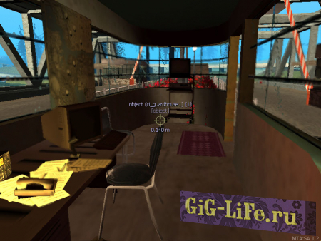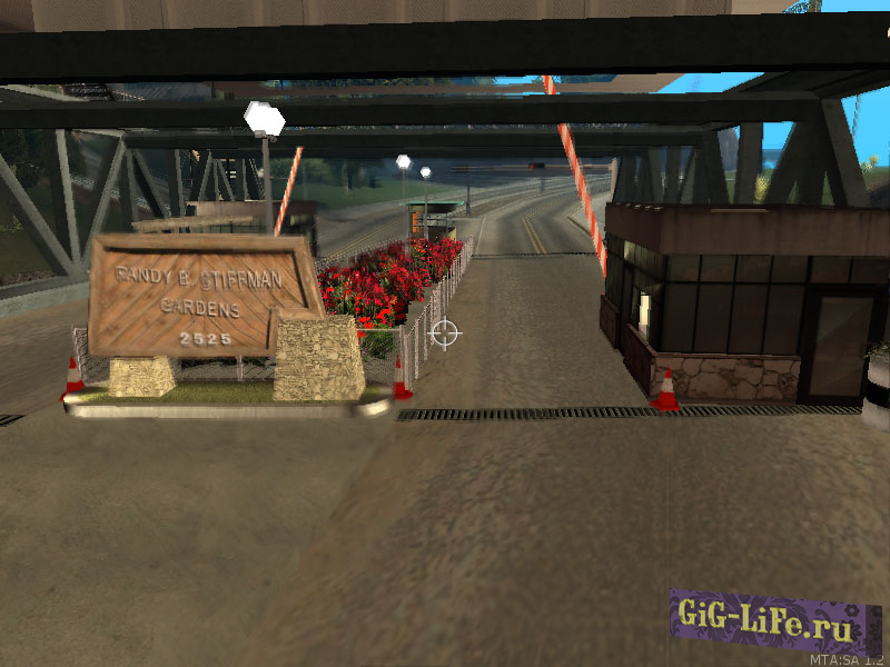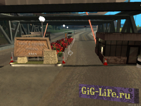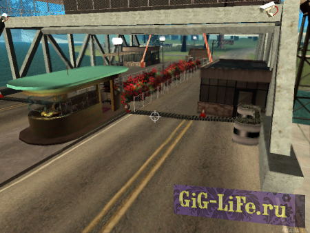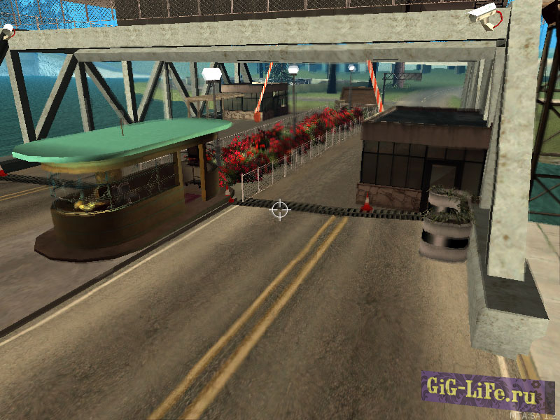 Новый пост для сотрудников LSPD на мосту LS - SF. На посту есть 2 будки, вертолетная площадка, клумба, 2 шлагбаума и главная будка, там есть стол с компьютерам, телевизор и конечно коврик.