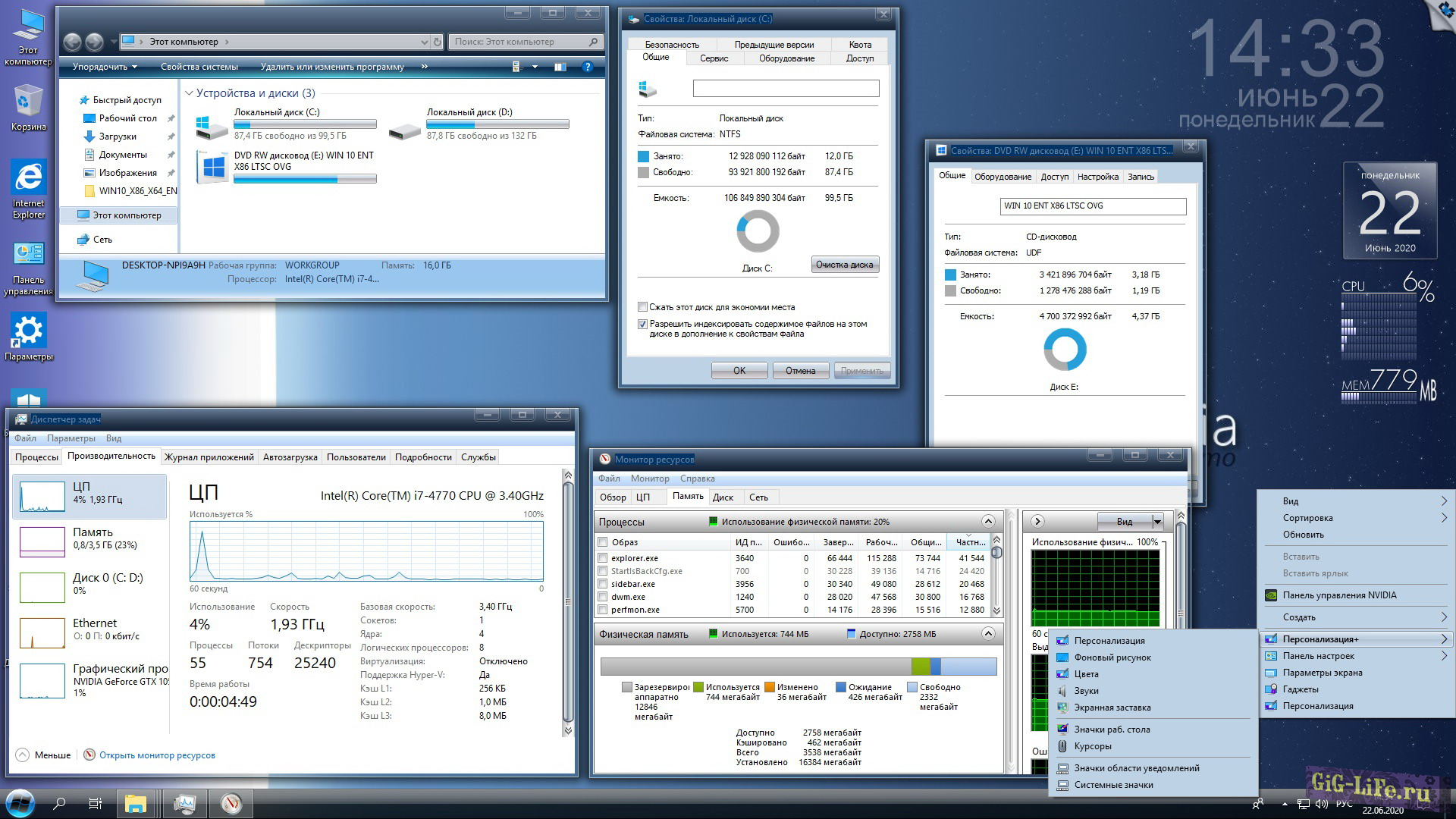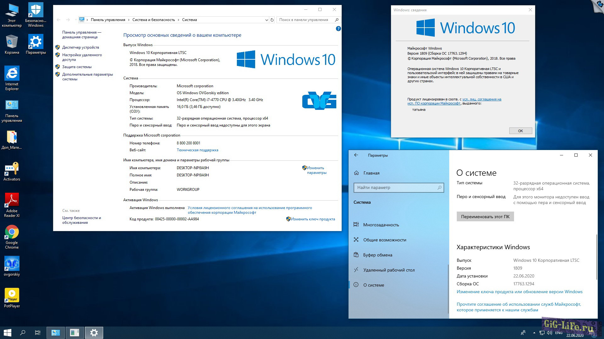 - Встроенный антивирус "Защитник Windows", SmartScreen и UAC в сборке отключены для возможности бесконфликтной активации и настройки системы после установки. После удачной активации рекомендую всё это запустить обратно вручную, либо с помощью твиков реестра из дополнительного материала (папка "Доп_Материал" на рабочем столе). А ещё лучше установить какой либо сторонний антивирус. Многие сторонние антивирусы поддерживают Windows 10 только в своих последних версиях. Не пытайтесь установить старые версии антивирусов.