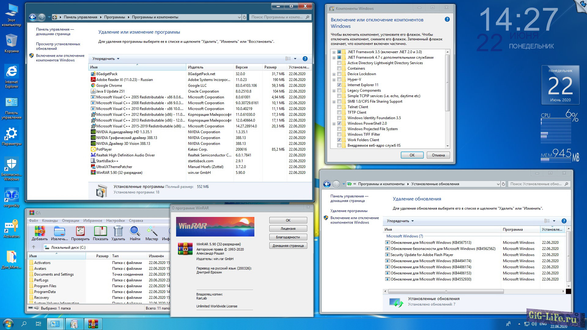 ► Отключены: Контроль учётных записей (UAC), "Защитник Windows" и SmartScreen (см. Замечания к сборке п.9).