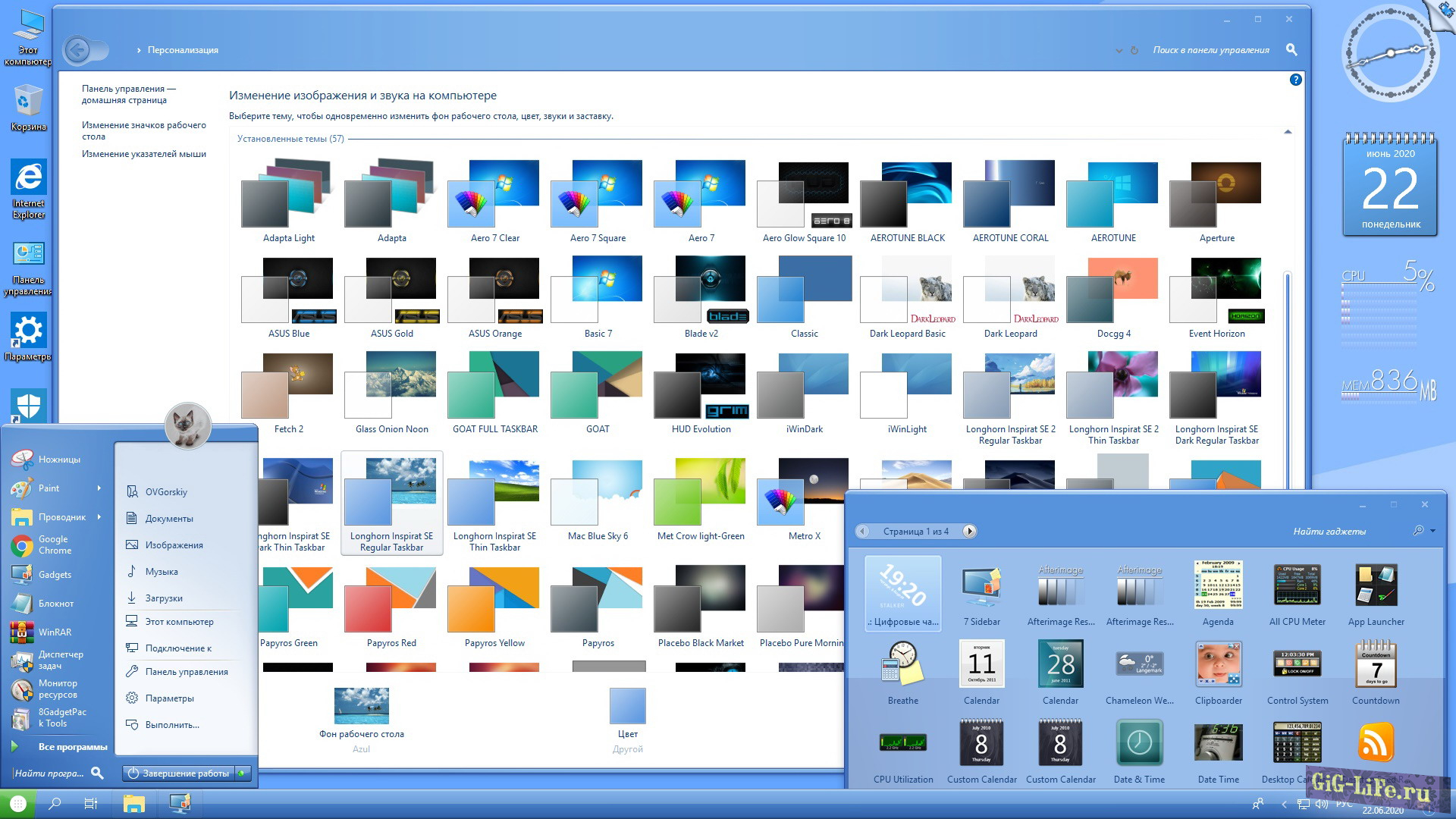 - 8GadgetPack v32.0, программа для установки в систему гаджетов рабочего стола;