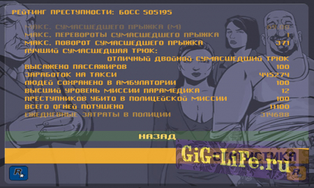 - (Stinger(UC), Cheetah (UC), Infernus (UC) aDP c 55) из "54 Большая кража машин"