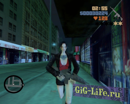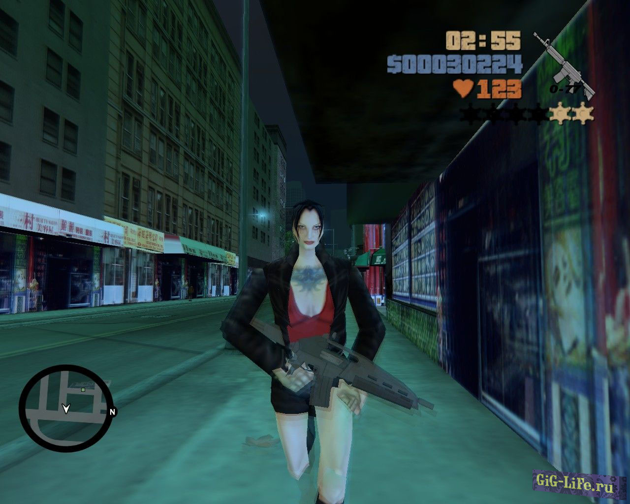 Бледнокожая девица в черно-красном одеянии отлично вписывается в темную атмосферу Либерти-Сити, а также придется по вкусу всем любителям играть за женских персонажей.