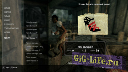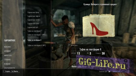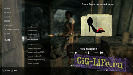 2. Например вы изготовили вариант "Туфли на платформе I" (низкая подошва), этот вариант можно сразу одеть, но можно модифицировать, например изготовить вариант "Туфли вампирши I" или II или III или IV или V (данные варианты на картинках имеют красный цвет носовой части туфли), одеваете "Туфли на платформе I" как основу и тут же одеваете один из вариантов "Туфли вампирши I" или II или III или IV или V и в итоге у вас получится микс "Туфли на платформе I" + носовая часть от вариантов "Туфли вампирши I" или II или III или IV или V