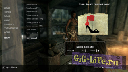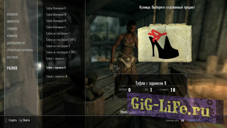 3. Теперь вы можете изготовить заднюю часть туфли, задняя часть имеет название "Туфли с задником" I или II или III, изготовьте любой вариант и так же можете одеть, в итоге будет так "Туфли на платформе I" + носовая часть от вариантов "Туфли вампирши I" или II или III или IV или V + "Туфли с задником" I или II или III и получается микс из 3-х составных "Платформа + задник + носовая часть", в итоге получается полноценная "туфля"