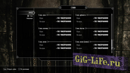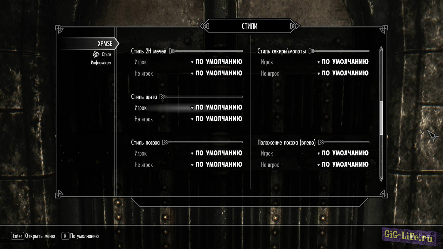 Список стилей (положения оружия / В этом списке указаны положения оружия из модов, которые включены в XPMSE)