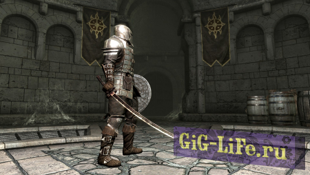 В этом моде-реплейсере немного изменена форма и кривизна меча, гарду, и добавлены ножны.