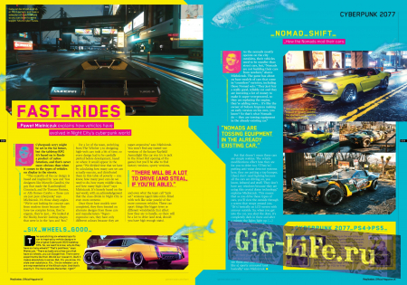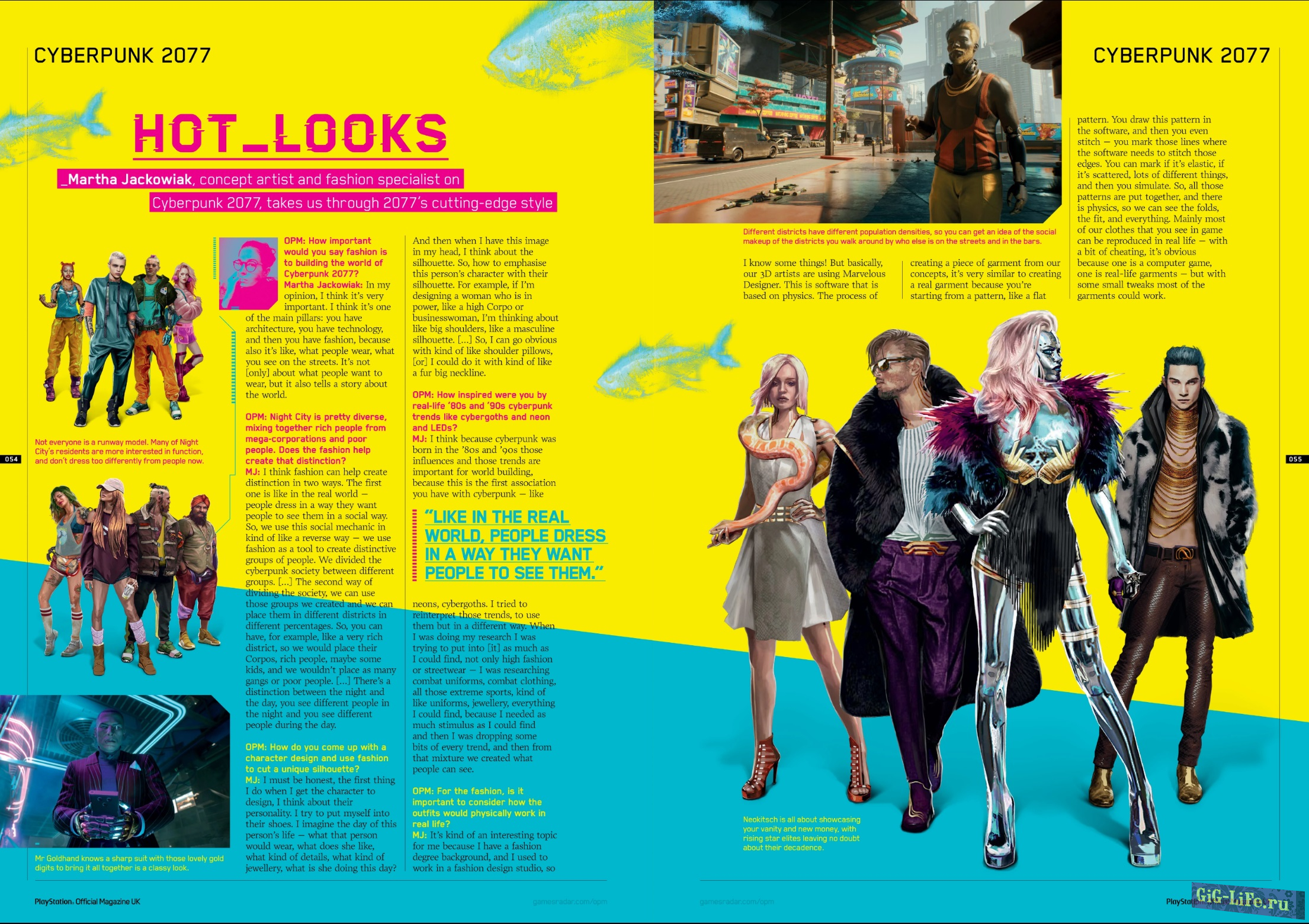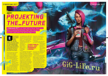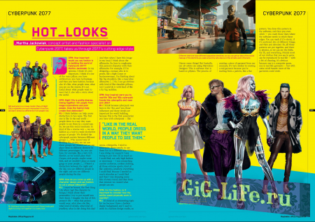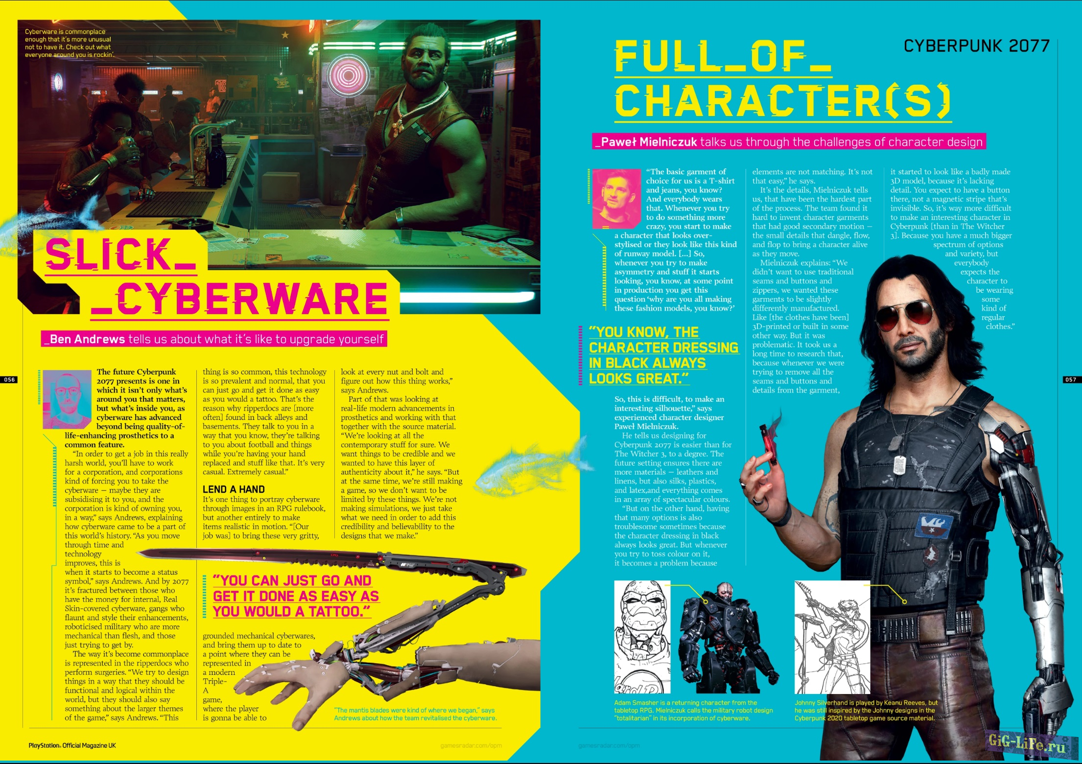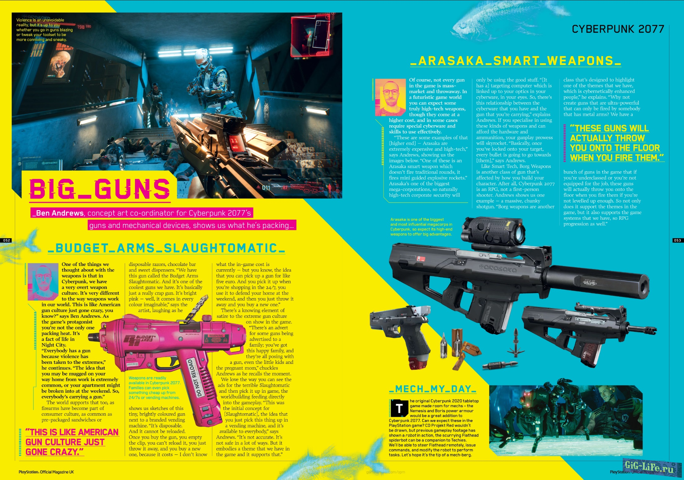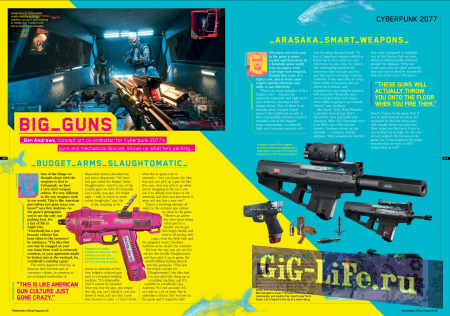 На страницах из статьи журнала можно увидеть новый арты с главным героем игры Ви с розовой рукой, оружие от корпораций Budget Arms и Arasaka, а также Джонни Сильверхенда.