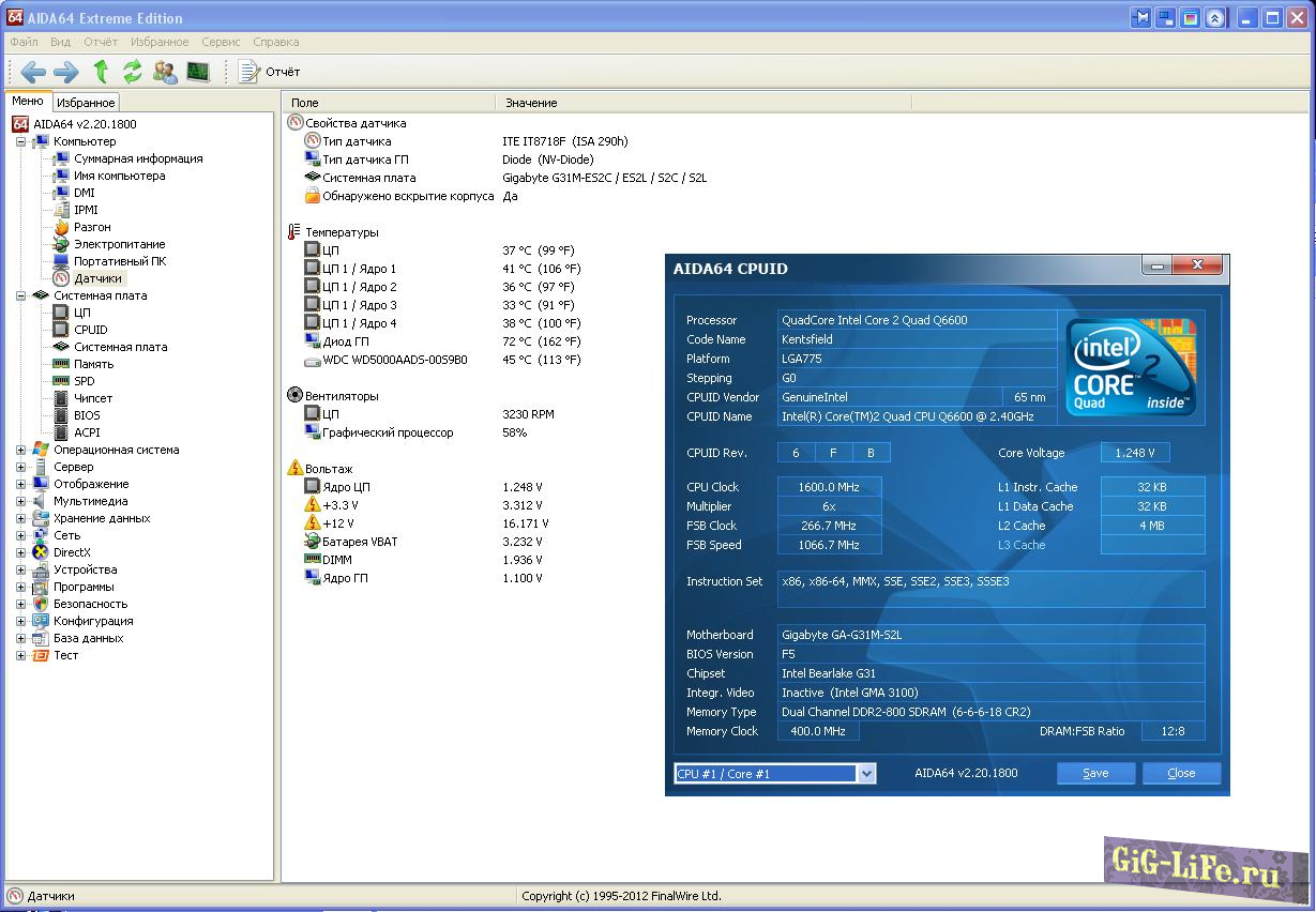 AIDA64 (бывший EVEREST) - утилита является мощным средством для идентификации и тестирования практически любых компонентов персонального компьютера под управлением операционных систем семейства Windows. Предоставляет вам детальные сведения обо всем аппаратном и программном обеспечении, кроме того, при помощи встроенных модулей для тестирования и калибровки можно провести дополнительную проверку отдельных подсистем ПК. Выводит подробные сведения обо всем аппаратном и программном обеспечении, установленном в системе.
