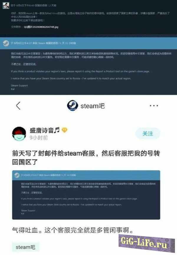 "Я отправил это письмо в поддержку Steam, а они сделали Китай моим основным регионом на аккаунте! Я настолько зол, что могу блевать кровью. Поддержка лезет туда, куда не следует."
