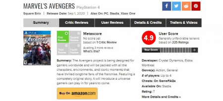 Версия для PS4 имеет 4.9/10 баллов, версия для Xbox One ещё меньше — 3.6/10 баллов. Также в сети появился первый обзор от профессиональных критиков. Портал Gamers Heroes оценил игру на 8/10 баллов.