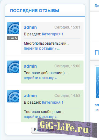 - Универсальный вывод последних отзывов в блоке