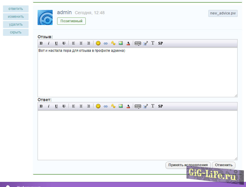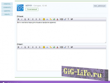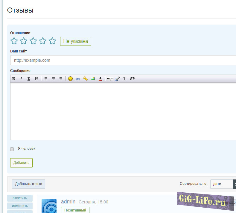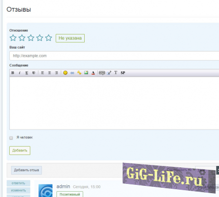 Установка не требует многих правок движка. Всего несколько простых действий и у вас полноценная система отзывов готова к работе. Теперь пользователи смогут выразить свое мнение практически обо всем. Он также позволит вашим посетителям высказаться и предложить что-нибудь нужное для вашего сайта. Тем самым его можно использовать и для пожеланий без, каких либо изменений в плане функционала.
