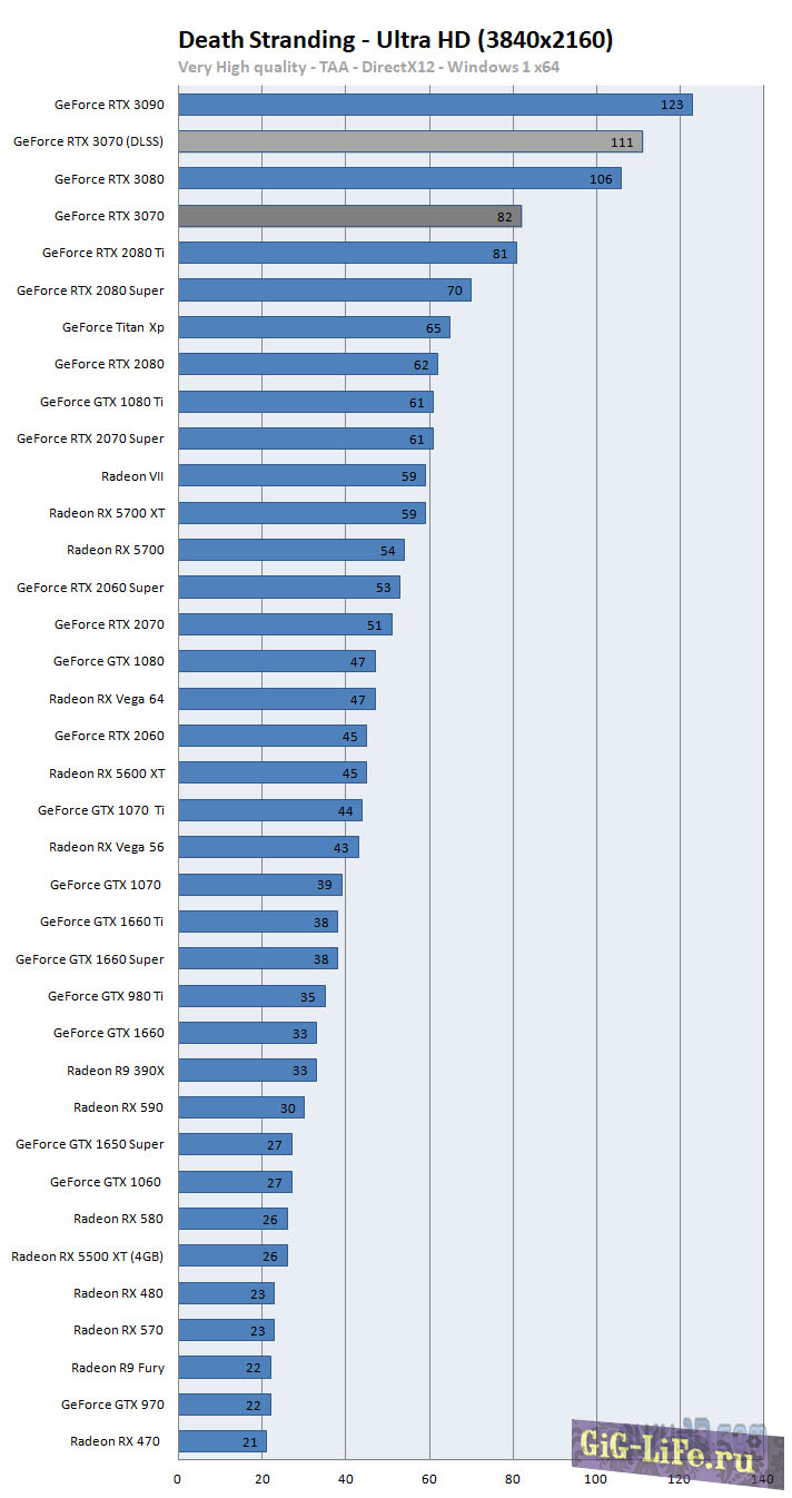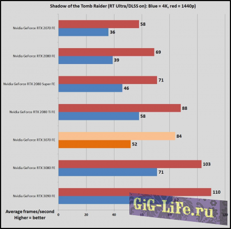По данным PCWorld, RTX 3070 предлагает немного худшую производительность в играх с трассировкой лучей, таких как Metro: Exodus и Shadow of the Tomb Raider.Честно говоря, в некоторых случаях RTX 3070 может соответствовать или даже превосходить RTX 2080Ti. Например, Guru3D протестировали Resident Evil 3 Remake и выяснили, что RTX 3070 предлагает немного лучшую производительность, чем RTX 2080Ti. В Death Stranding RTX 3070 также показала результаты, схожие с RTX 2080Ti.