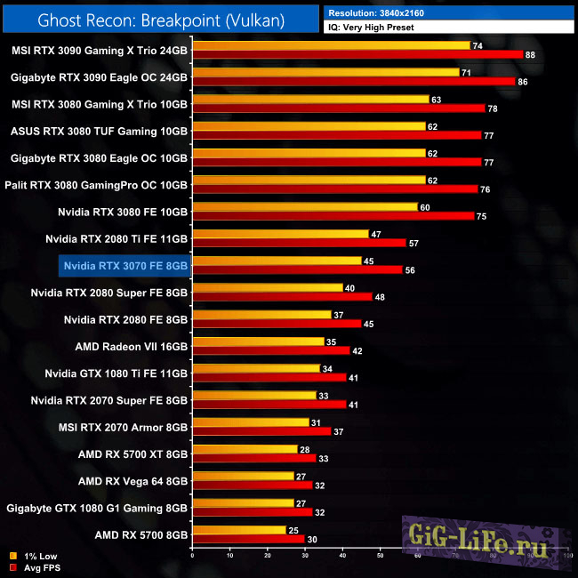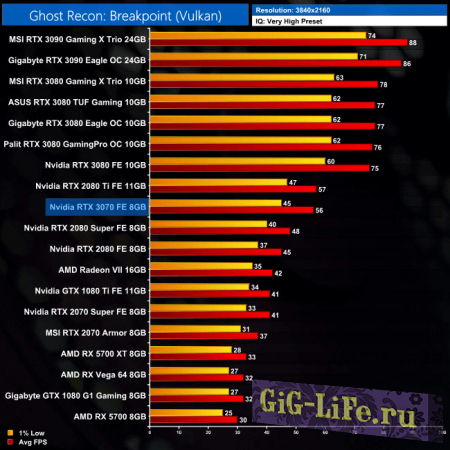 Kitguru также наблюдал такое же поведение в различных играх. По сути, RTX 3070 может быть немного медленнее или немного быстрее RTX 2080Ti.