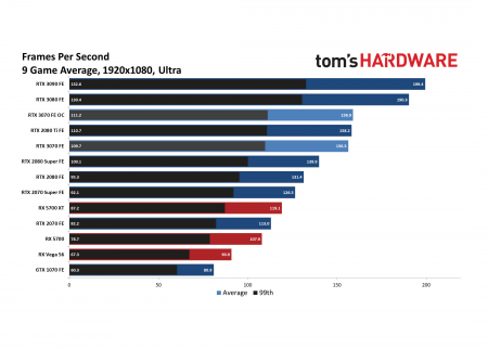 Tomshardware протестировала 9 игр и обнаружила, что RTX 3070 немного медленнее, чем RTX2080Ti.
