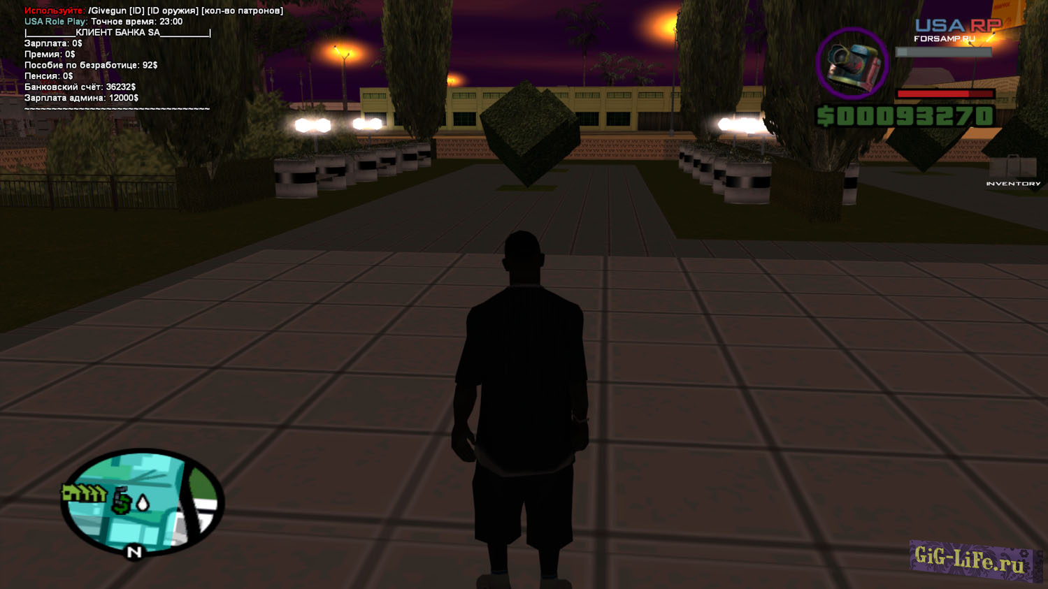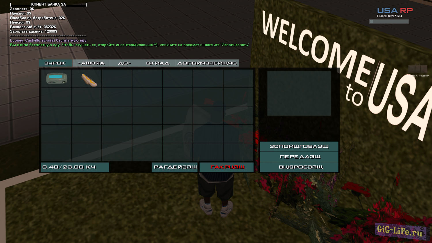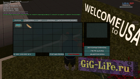Инвентарь и спидометр Когда-то образцово-показательный проект RakNet Roleplay подкинул свежуюю идею, а именно - инвентарь. С тех пор много воды утекло и эта система стала всё чаще появляться в других проектах. USA RP - не исключение, тут мы видим упрощенный инвентарь, с помощью него мы можем носить вещи, использовать их, передавать, выкидывать. Спидометр тоже заслуживает внимания, он выполнен в едином стиле с остальным сервером и имеет кучу индикаторов